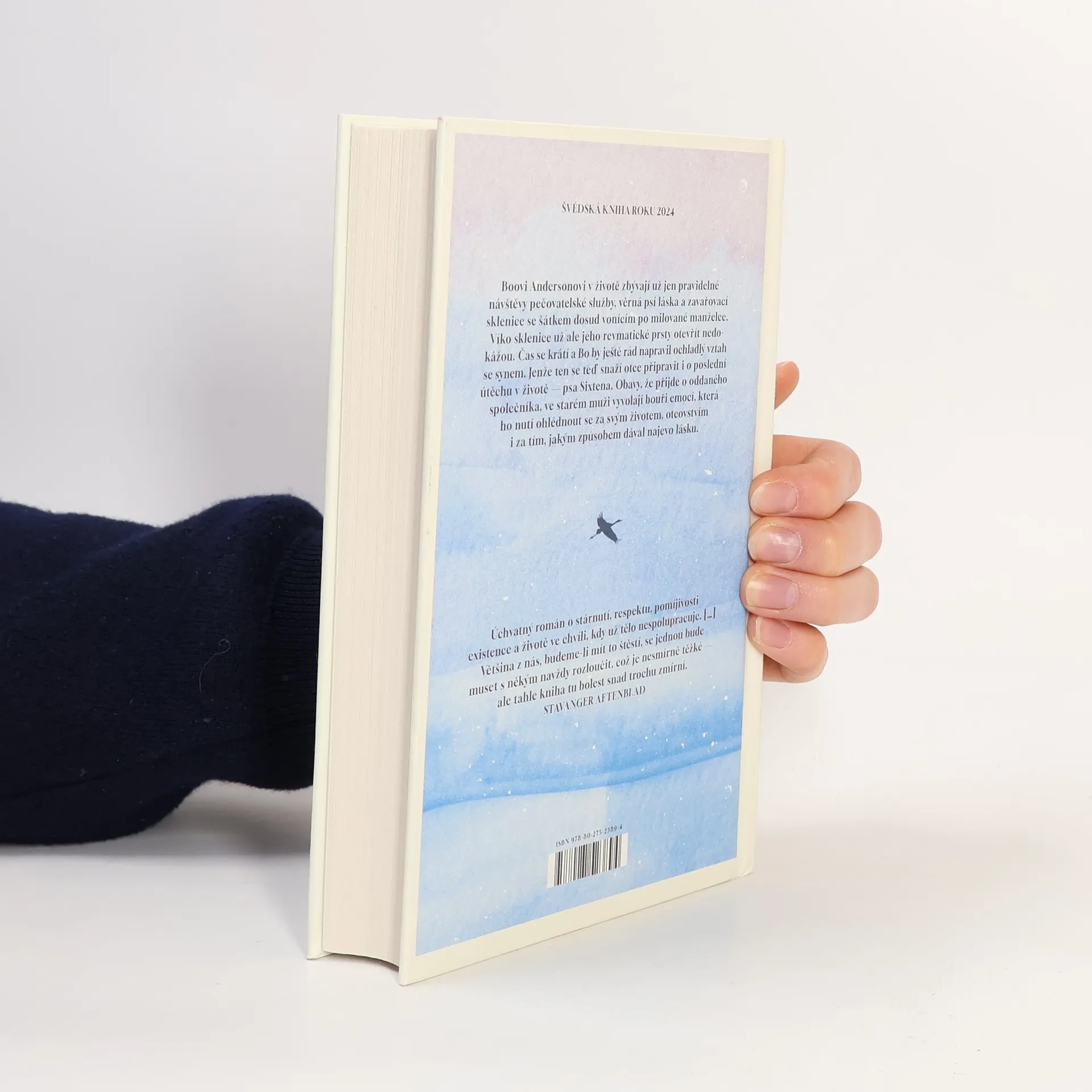 Boovi toho v životě nezbývá o moc víc než pravidelné návštěvy pečovatelské služby, věrná psí láska a zavařovací sklenice se šálou dosud vonící po milované manželce. Víko sklenice už ale Boovy revmatické prsty otevřít nedokážou. Bo nemá příliš času dát věci do pořádku a stihnout to, co se zdá čím dál nemožnější — napravit ochladlý vztah se synem. Ten se teď totiž Boa ještě ke všemu snaží připravit i o poslední útěchu v jeho životě — psa Sixtena. Obavy, že přijde i o svého oddaného společníka, ve starém muži vyvolají bouři emocí, která ho nutí ohlédnout se za svým životem, otcovstvím i za tím, jakým způsobem dával najevo lásku. Jeřábi táhnou na jih je hluboce dojemný debut o muži na sklonku života, o stárnutí, synech a psech. Švédská kniha roku 2024