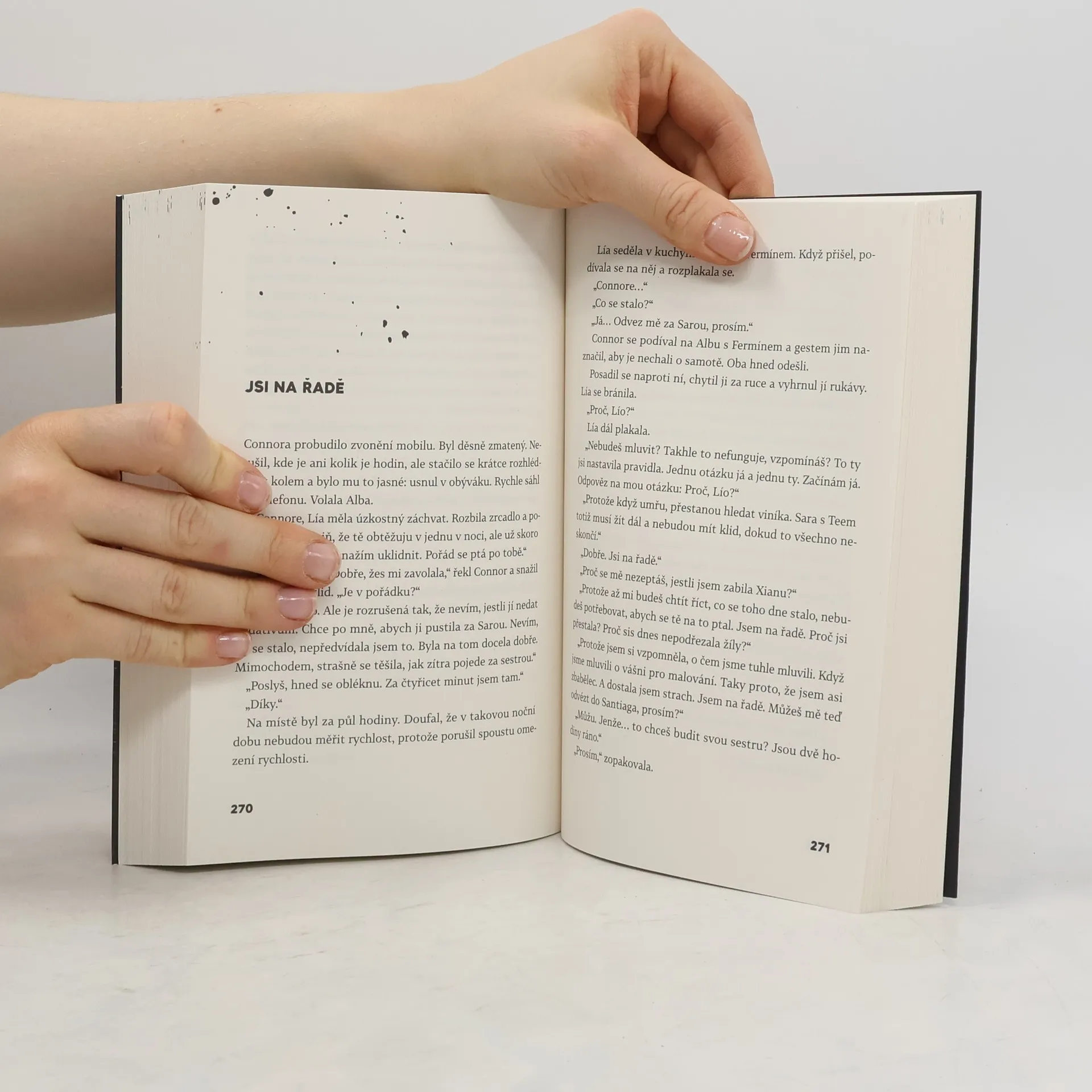 Šest lidí, kteří budou zanedlouho podezřelí z vraždy, večeří na zahradě luxusní vily na předměstí Santiaga, zatímco mrtvé tělo patnáctileté Xiany Alénové leží na podlaze jejího pokoje naaranžované v obrovské kaluži krve, jako by šlo o uměleckou instalaci. Všechny indicie ukazují nato, že vraždu spáchala dívčina teta Lía, slavná malířka, která se po několika dnech pokusí o sebevraždu a je hospitalizována na psychiatrii. Komisař Santi Abad a jeho kolegyně Anna Barrosová, s níž ho pojí bouřlivý, komplikovaný vztah, postupně odhalují hluboká rodinná tajemství a neviditelná pouta. Napínavý detektivní román pomohl autorce k přízvisku „Nová první dáma španělské detektivky.“