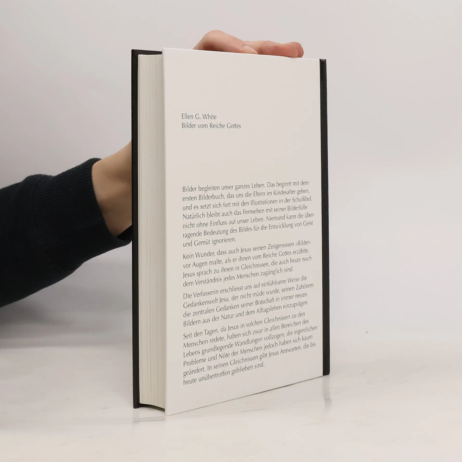 Bilder begleiten uns durchs ganze Leben. Es beginnt mit dem ersten Bilderbuch und setzt sich unaufhaltsam fort: Zeitschriften, Fernsehen, Internet . Und niemand kann sich dem prägenden Einfluss dieser Bilder auf Geist und Gemüt entziehen. Kein Wunder, dass auch Jesus seinen Zeitgenossen "Bilder" vor Augen malte, als er vom Reich Gottes erzählte. Er redete häufig in Gleichnissen, die selbst nach 2000 Jahren immer noch für alle Menschen verständlich sind. Warum das so ist? Die Verhältnisse und Gegebenheiten haben sich geändert, aber die grundlegenden Probleme und Nöte des Menschen sind gleich geblieben. In den Gleichnissen machte Jesus Grundsätze anschaulich, über die nachzudenken sich auch heute noch lohnt. - Die Gleichnisse Jesu gehören zu den faszinierendsten Bildreden der Weltliteratur. Sie sind in diesem Buch alle thematisch zusammengestellt. Die Autorin Ellen G. White aktualisiert die tiefen Weisheiten in den Gleichnissen Jesu lebensnah und verständlich. Besonders wertvoll sind auch die zahlreichen Erklärungen zum geschichtlichen und kulturellen Hintergrund dieser Texte. Eine Fundgrube für stille Lesepausen