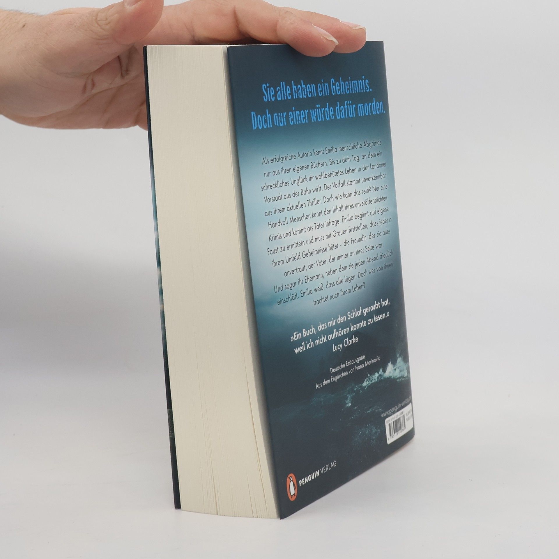 Sie alle haben ein Geheimnis. Doch nur einer würde dafür morden. Als erfolgreiche Autorin kennt Emilia menschliche Abgründe nur aus ihren eigenen Büchern. Bis zu dem Tag, an dem ein schreckliches Unglück ihr wohlbehütetes Leben in der Londoner Vorstadt aus der Bahn wirft. Der Vorfall stammt unverkennbar aus ihrem aktuellen Thriller. Doch wie kann das sein? Nur eine Handvoll Menschen kennt den Inhalt ihres unveröffentlichten Krimis und kommt als Täter infrage. Emilia beginnt auf eigene Faust zu ermitteln und muss mit Grauen feststellen, dass jeder in ihrem Umfeld Geheimnisse hütet – die Freundin, der sie alles anvertraut, der Vater, der immer an ihrer Seite war. Und sogar ihr Ehemann, neben dem sie jeden Abend friedlich einschläft. Emilia weiß, dass alle lügen. Doch wer von ihnen trachtet nach ihrem Leben? Englands Thriller-Königin Claire Douglas ist zurück. Nach den Nummer-1-SPIEGEL-Bestsellern Beste Freundin und Girls Night nun ihr neuestes Meisterwerk. Unfassbar atmosphärisch, unvergleichlich spannend – unerwartete Wendungen und Twists bis zur allerletzten Seite.