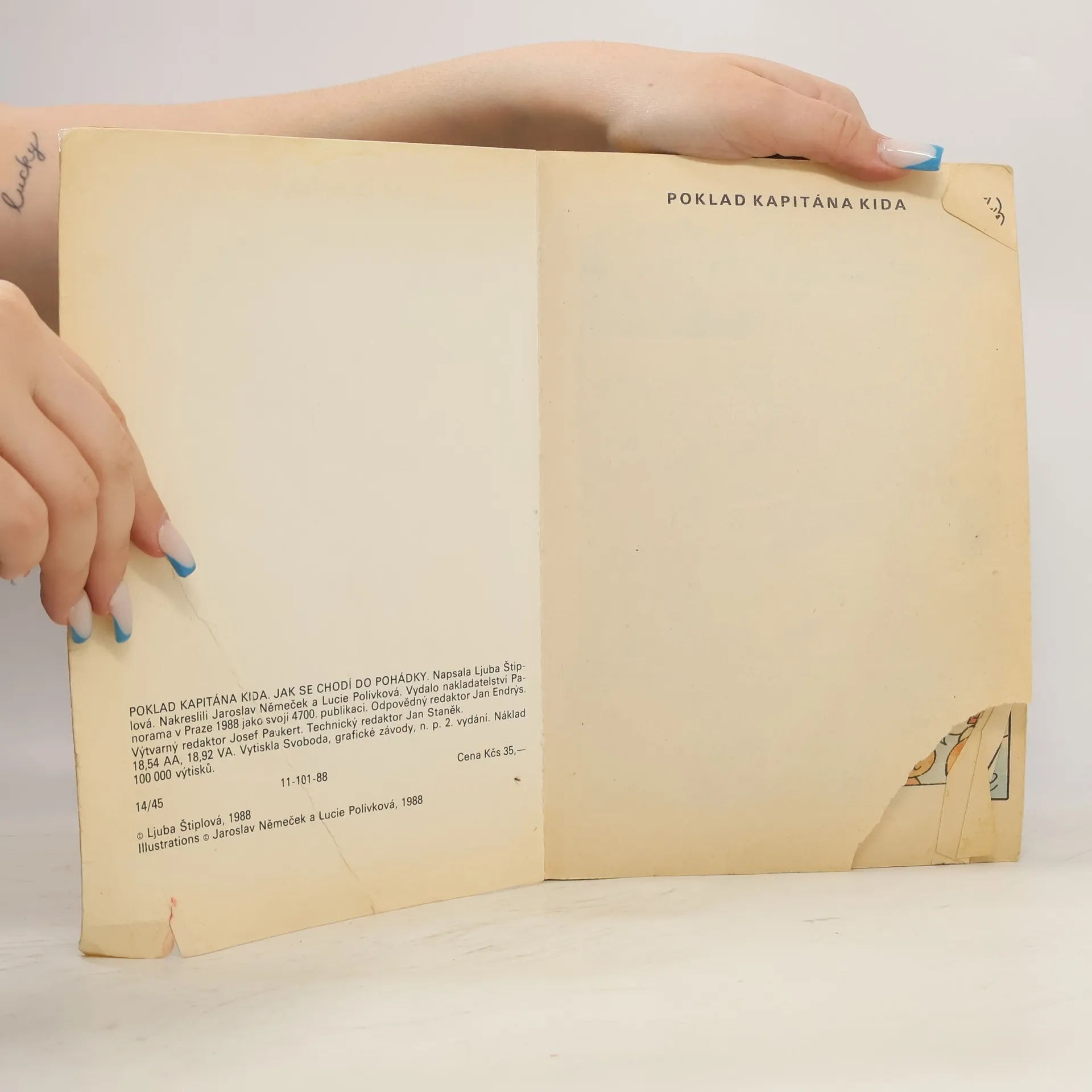 Dva samostatné příběhy Čtyřlístku. Příběh Jak se chodí do pohádky tištěn zvratmo se samostatnou obálkou. Poklad kapitána Kida (92 stran) Jak se chodí do pohádky (68 stran)