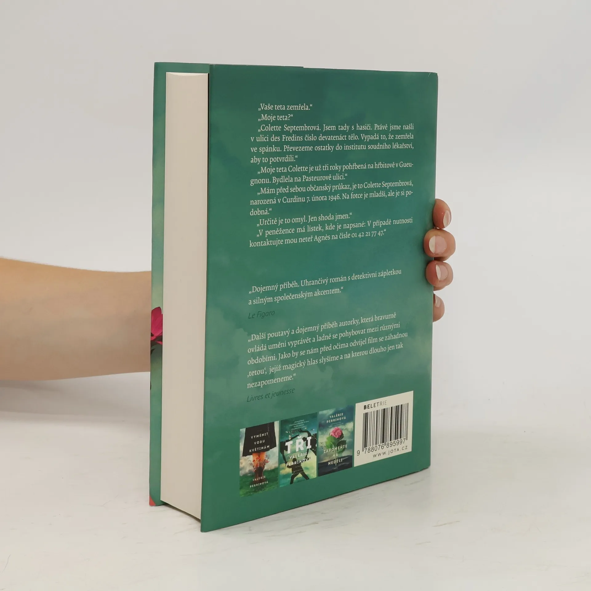 Píše se rok 2010, když policie kontaktuje Agnes s informací, že její teta Colette Septembrová právě zemřela. Ale toto není možné, teta Colette přece zemřela před třemi lety… Agnes si myslí, že je to omyl nebo shoda jmen, Přesto se vrací do malého městečka v Burgundsku, odkud kdysi dávnoodešla, aby identifikovala tělo neznámé ženy, která jí zanechala poslední vůli a nahrané audiokazety. Kdo je ta žena? Jestli je to Colette Septembrová, kdo leží na hřbitově místo ní? A proč by její teta chtěla, aby si Agnes myslela že je mrtvá? Proč by se celé tři roky ukrývala? kdo vlastně byla teta Colette doopravdy a co skrývala? Agnes se rozhodne přijít této záhadě na kloub a my se spolu s ní ponoříme do podmanivého a dechberoucího příběhu od Valérie Perrinové, spisovatelky se vzácným vypravěčským talentem, která si získala srdce českých čtenářů.