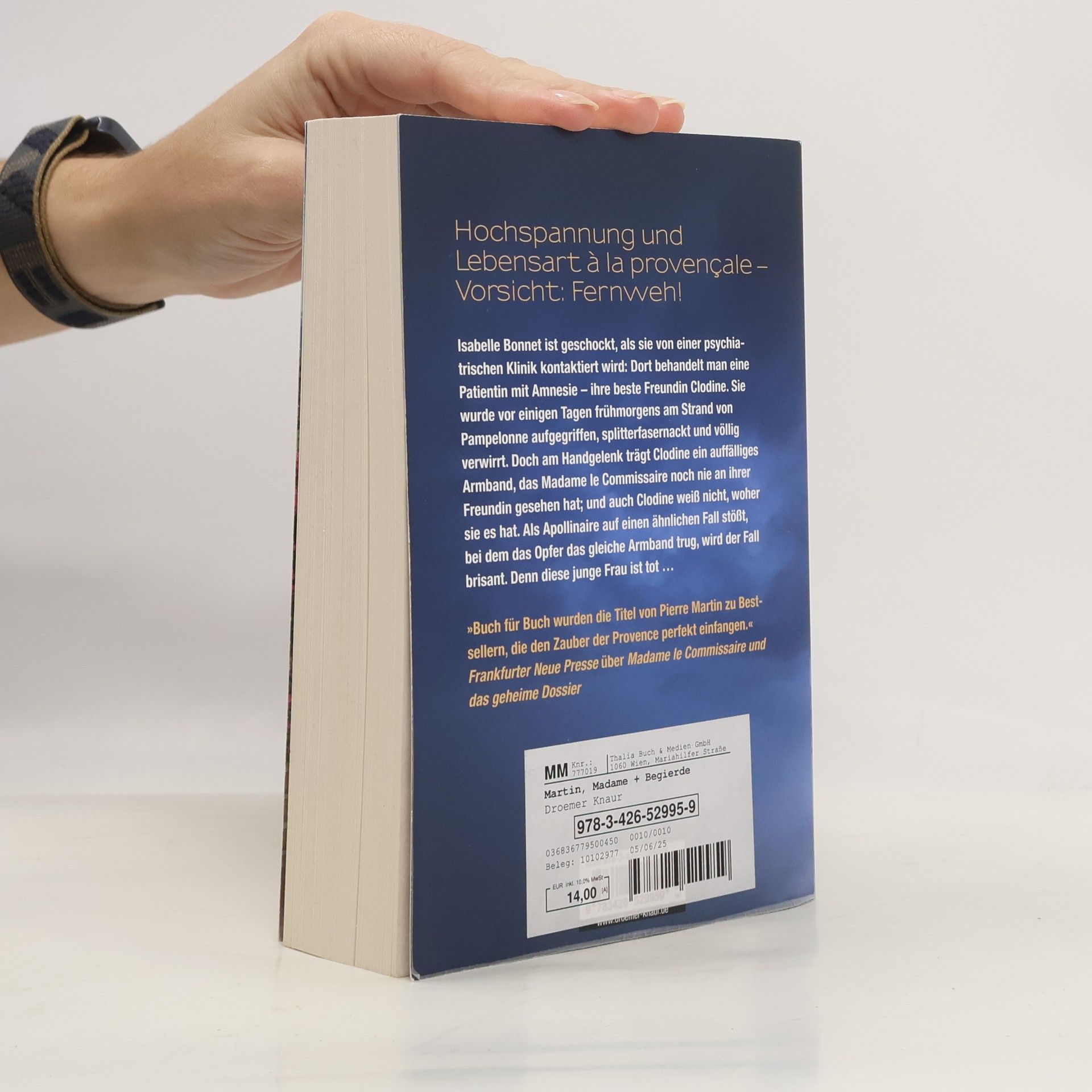 Madame le Commissaire ermittelt an den Traumzielen der französischen »Madame le Commissaire und die gefährliche Begierde« ist der 12. Provence-Krimi um die sympathische Kommissarin Isabelle Bonnet von Bestseller-Autor Pierre Martin.Isabelle Bonnet ist geschockt, als sie von einer psychiatrischen Klinik kontaktiert Dort behandelt man eine Patientin mit Amnesie. Die Frau ist ihre beste Freundin, Clodine. Sie wurde vor einigen Tagen früh morgens am Strand von Pampelonne aufgegriffen, splitterfasernackt und völlig verwirrt. Als erste Erinnerungen zurückkehren, erzählt Clodine von einer Party am Strand. Waren K-o-Tropfen im Spiel?Madame le Commissaire bemerkt ein auffälliges Armband, das sie noch nie an Claudine gesehen hat – die ebenfalls nicht weiß, woher sie es hat. Als Apollinaire auf einen ähnlichen Fall stößt, bei dem das Opfer das gleiche Armband trug, wird der Fall brisant. Denn diese junge Frau ist tot …Ihre Ermittlungen führen Isabelle Bonnet an pittoreske Schauplätze, die die Provence von ihren schönsten Seiten zeigen – von malerischen Stränden bis zu blühenden Lavendelfeldern. Mit seinen Urlaubskrimis bietet Pierre Martin die perfekte Mischung aus spannenden Fällen, sympathischen Figuren, traumhaftem Urlaubsflair und einer Prise Witz.