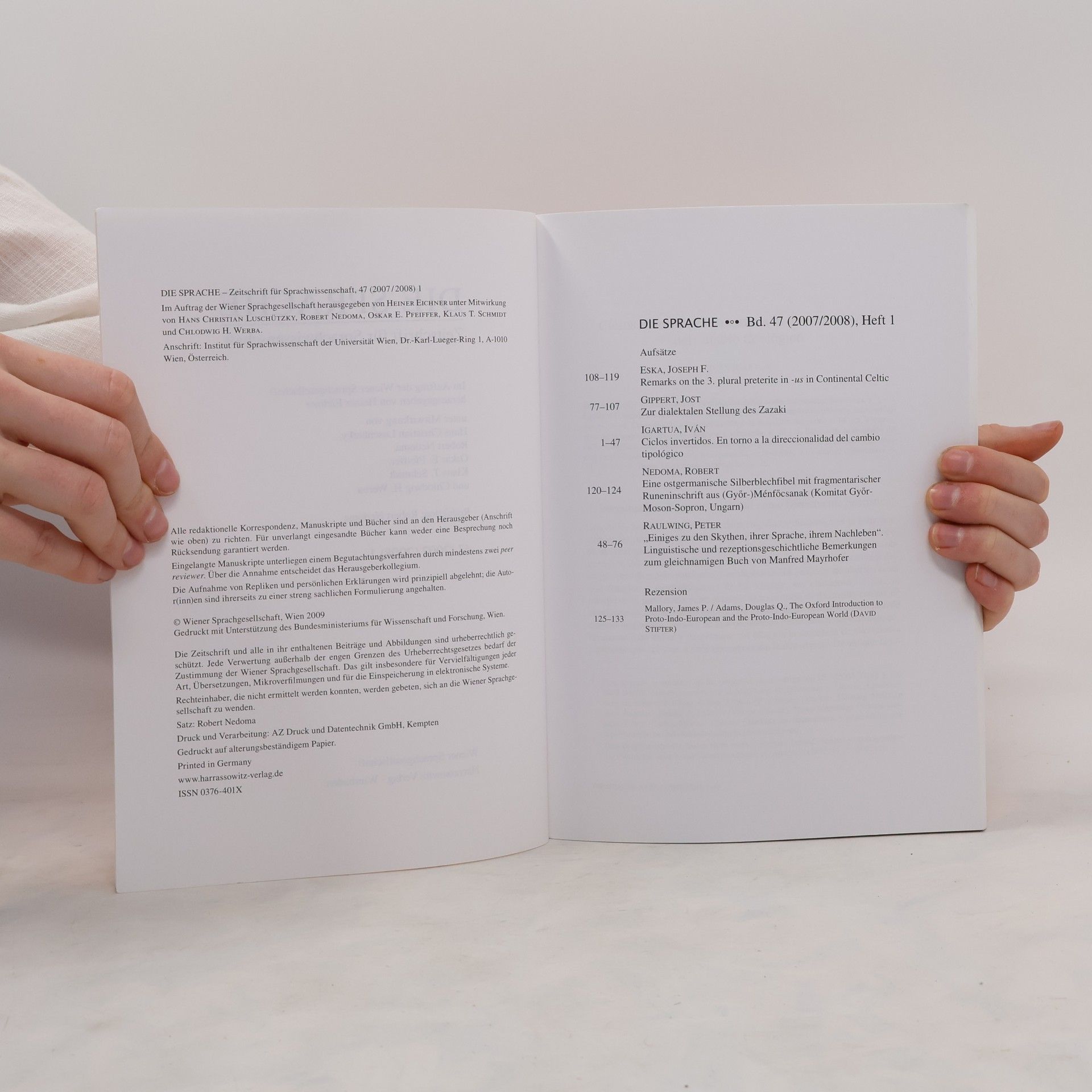Die Sprache. Zeitschrift für Sprachwissenschaft. Band 47, Heft 1, Various authors