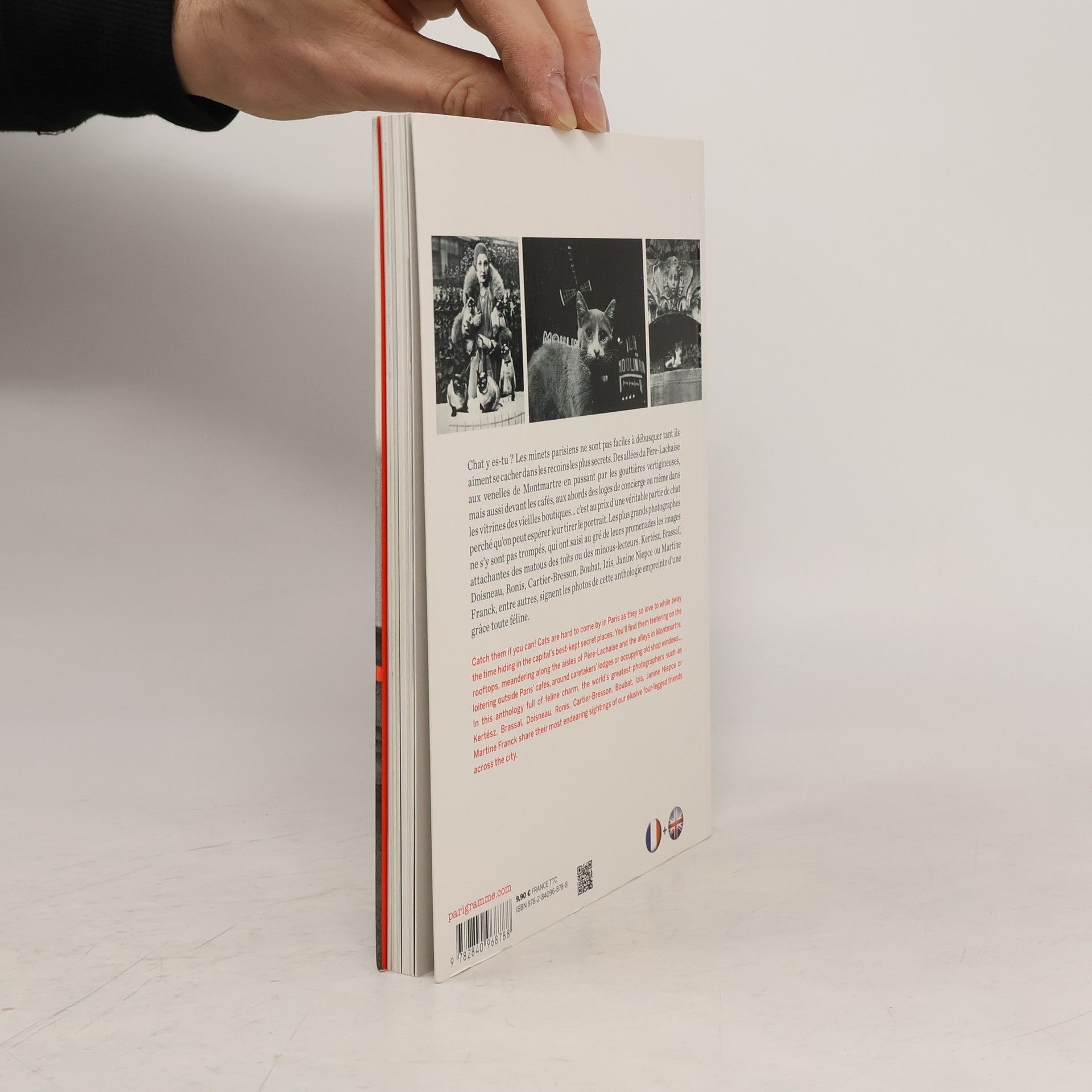 Chat y es-tu ? Les minets parisiens ne sont pas faciles à débusquer tant ils aiment se cacher dans les recoins les plus secrets. Des allées du Père-Lachaise aux venelles de Montmartre en passant par les gouttières vertigineuses, mais aussi devant les cafés, aux abords des loges de concierge ou même dans les vitrines des vieilles boutiques, c'est au prix d'une véritable partie de chat perché qu'on peut espérer leur tirer le portrait. Les plus grands photographes ne s'y sont pas trompés, qui ont saisi au gré de leurs promenades les images attachantes des matous des toits ou des minous-lecteurs. Kertész, Brassaï, Doisneau, Ronis, Cartier-Bresson, Boubat, Izis, Janine Niepce ou Martine Franck, entre autres, signent les photos de cette anthologie empreinte d'une grâce toute féline.