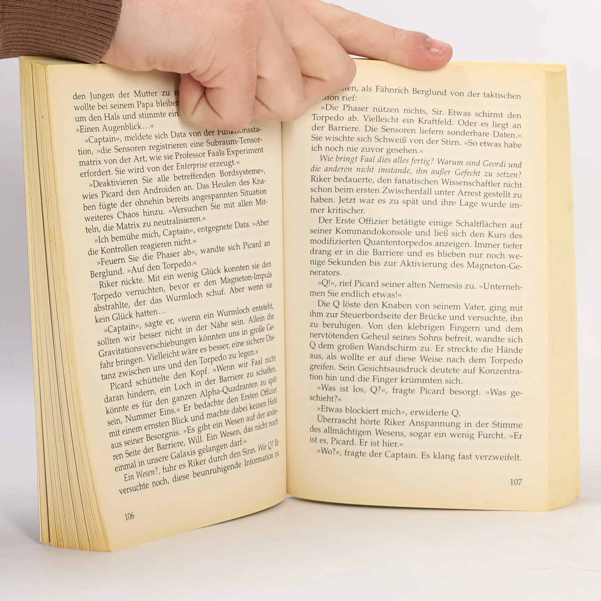 In der Galaktischen Barriere sind Commander Riker und die Crew der Enterprise für kurze Zeit sicher. Doch die Energien der Barriere haben einen verhängnisvollen Einfluss auf viele Mannschaftsmitglieder – auch auf Professor Faal. Trotz massiven Widerstands der Crew gelingt es ihm, den modifizierten Torpedo aubzufeuern, der ein Wurmloch in der Barriere schaffen soll. Dadurch erhält ein verbanntes Superwesen Zutritt zur Galaxis, das nur ein einziges Ziel verfolgt: Q zu vernichten. Während seiner Zeitreise in Qs Vergangenheit erfährt Captain Jean-Luc Picard, was es mit diesem bösartigen Superwesen auf sich hat und weshalb die Barriere nicht angetastet werden darf. Doch als er mit Q zur Enterprise zurückkehrt, kann er die Katastrophe nicht mehr verhindern …