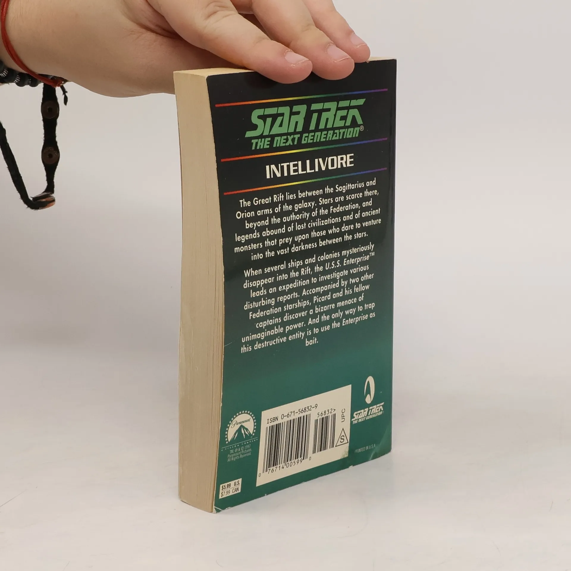 The Great Rift lies between the Sagitarius and Orion arms of the galaxy. Stars are scarce there, beyond the authority of the Federation, and legends abound of lost civilizations and of ancient monsters that prey on those who dare to venture into the vast darkness between the stars. When several ships and colonies mysteriously disappear into the Rift, the U.S.S. Enterprise leads an expedition to investigate various disturbing reports. Accompanied by two other Federation starships, Picard and his fellow captains discover a bizarre menace of unimaginable power. And the only way to trap this destructive entity is to use the Enterprise as bait.