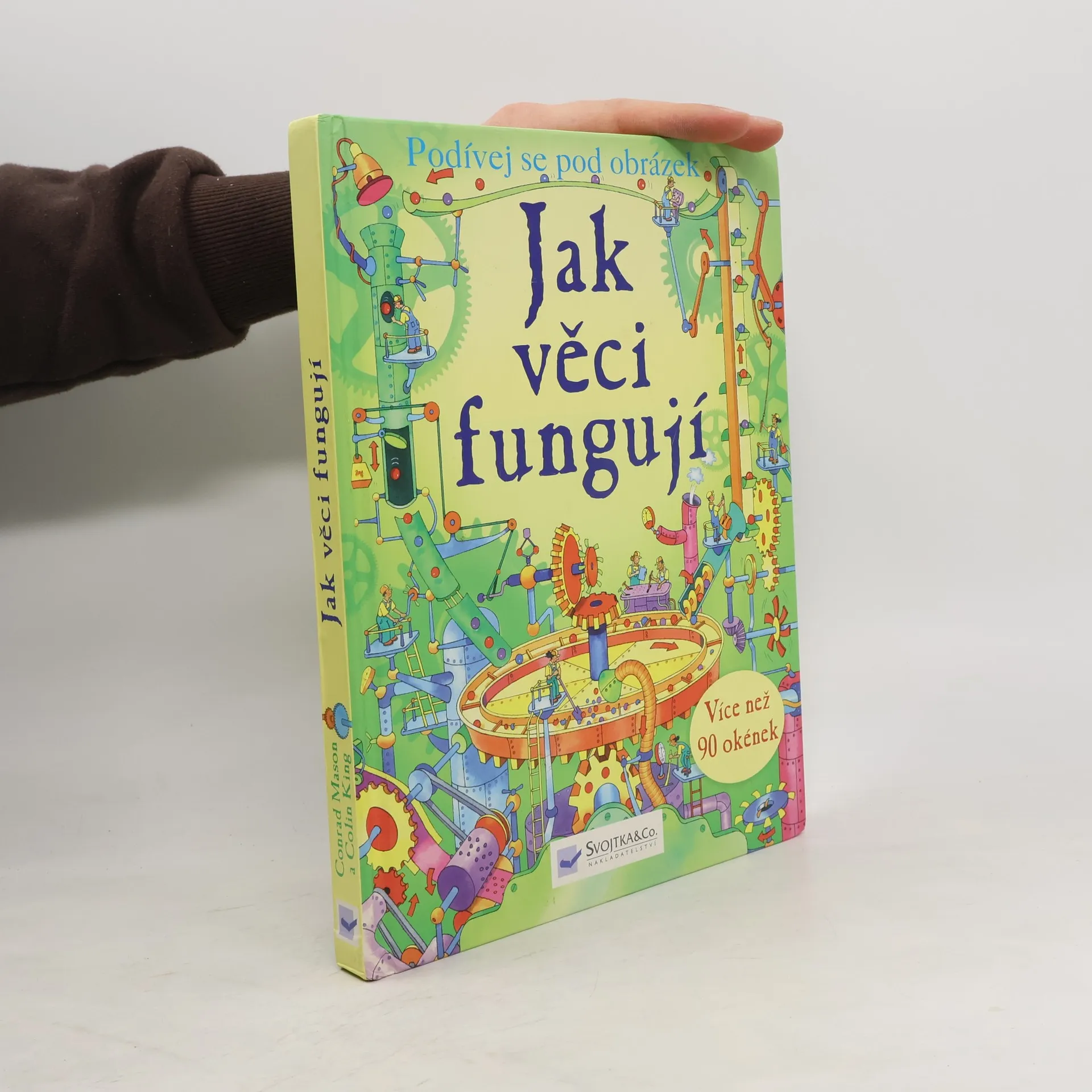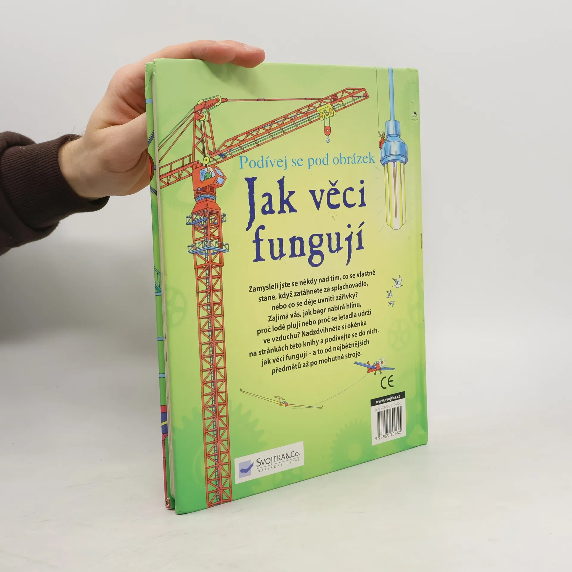 Zamysleli jste se někdy nad tím, jak protéká voda splachovacím zařízením, případně co se děje uvnitř zářivky – proč vlastně svítí? Zajímá vás, jak bagr nabírá hlínu, proč lodě plují nebo proč se letadla udrží ve vzduchu? Nadzdvihněte okénka na stránkách této knihy a podívejte se do nich, jak věci fungují – a to od nejběžnějších předmětů až po mohutné stroje. V knížce jich naleznete více než 90.