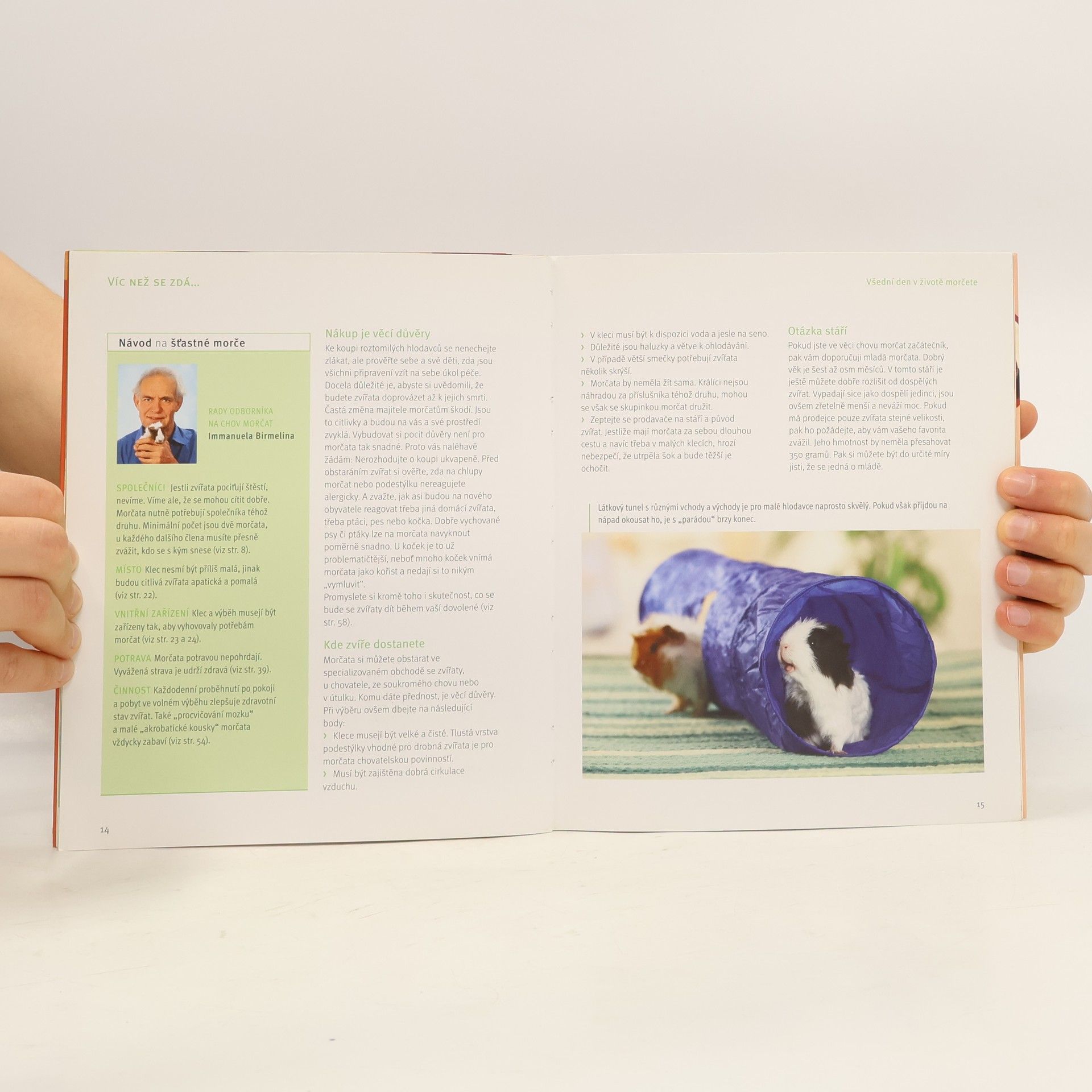 Kdo si myslí, že morčata jsou milá ale nudná, ten se mýlí. Ráda se vydávají na objevitelské cesty a rychle se učí. Mimoto milují společnost. Morčata se projevují jako opravdoví "žvanilové", kteří mezi sebou neustále udržují kontakt pištěním a bubláním. V příručce dobrých rad najdete všechno, co musíte vědět o chovu, péči, výživě a zdravotním stavu, aby se těmto žertovným hlodavcům dařilo ve všech ohledech dobře. Navíc se dozvíte spousty ověřených tipů a nápadů na nejkrásnější příbytky či vhodnou zábavu odpovídající tomuto druhu.