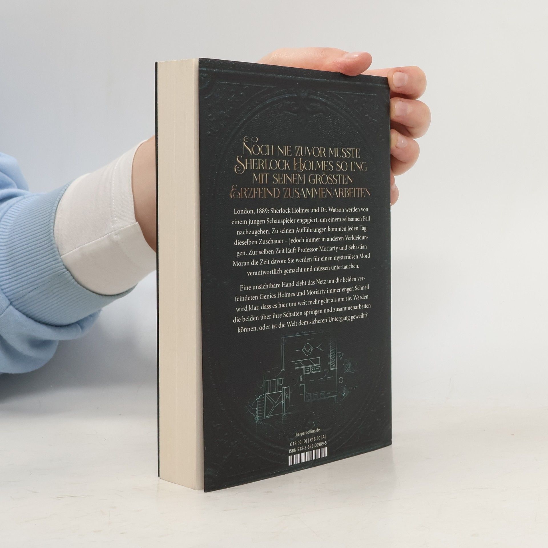 Noch nie zuvor musste Sherlock Holmes so eng mit seinem größten Erzfeind zusammenarbeiten London, 1889: Sherlock Holmes und Dr. Watson werden von einem jungen Schauspieler engagiert, um einem seltsamen Fall nachzugehen. Zu seinen Aufführungen kommen jeden Tag dieselben Zuschauer – jedoch immer in anderen Verkleidungen. Zur gleichen Zeit läuft Professor Moriarty und Sebastian Moran die Zeit davon: Sie werden für einen mysteriösen Mord verantwortlich gemacht und müssen untertauchen. Eine unsichtbare Hand zieht das Netz um die beiden verfeindeten Genies Holmes und Moriarty immer enger. Schnell wird klar, dass es hier um weit mehr geht als sie. Werden die beiden über ihre Schatten springen und zusammenarbeiten können, oder ist die Welt dem sicheren Untergang geweiht? Ein kriminalistisches Abenteuer auf den Spuren Arthur Conan Doyles
