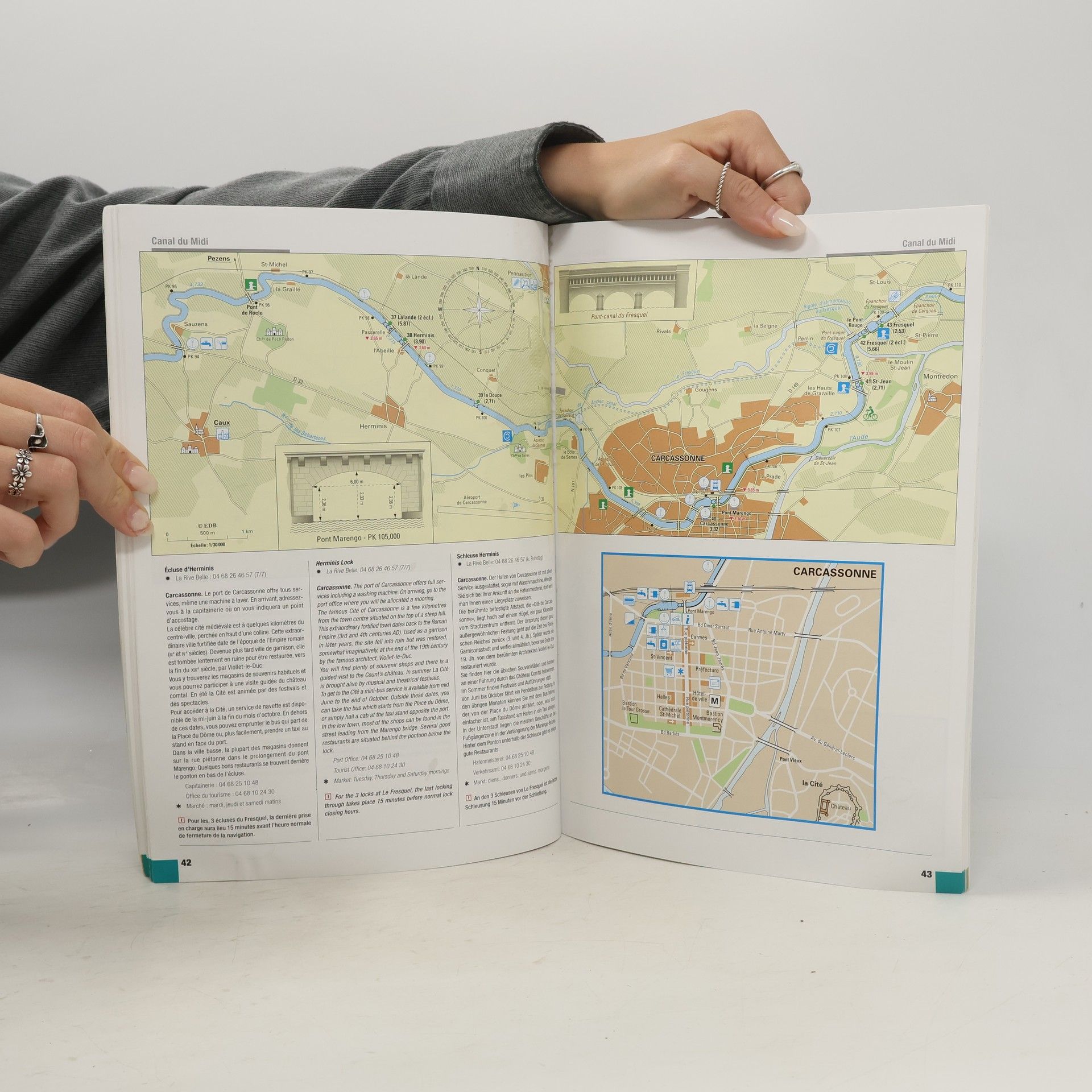 Canal du Midi Waterway 07 covers Canal de Jonction, Canal de la Robine, Etang de Thau, Canal du Rhone a Sete, Lez, Petit Rhone, Canal d''Arles a Bouc. This guide covers the region from Toulouse via Carcassonne, Narbonne and Beziers, then along the coast, before the canals turn inland to Arles and Beaucaire. With coloured maps and photos and all text in French, English and German. The canal du Midi, work of Pierre Paul Riquet and his illustrious successor the Marcal Vauban, is most famous for the quality of its waterways structures. But as you cruise along the canal, you can go past these wonders without even noticing them. In this new guide, exclusively dedicated to the canal du Midi and the other waterways east of Toulouse, we have photographed the aqueducts, canal bridges, spillways and syphons and you will find, on the map pages, a drawing of each of the most interesting of them. During your cruise, take the time to get off your boat and take a close look at some of these engineering feats of the 17th century. Listed as a world heritage monument, the canal is also known for its magnificent plane trees. Over the last few years