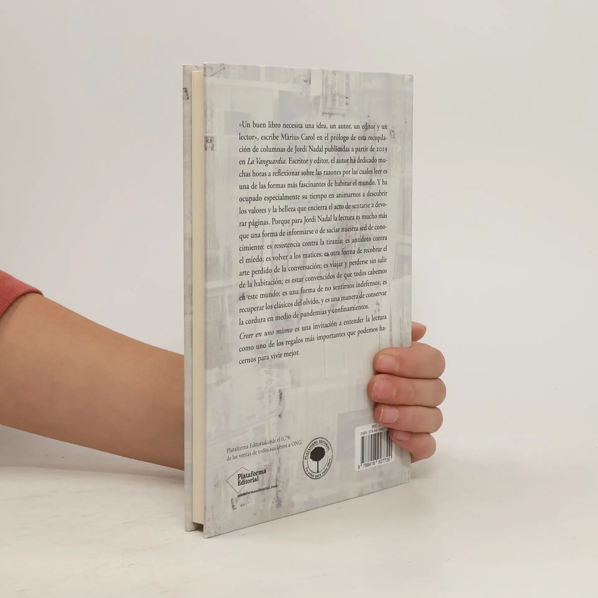 «Un buen libro necesita una idea, un autor, un editor y un lector», escribe Màrius Carol en el prólogo de esta recopilación de columnas de Jordi Nadal publicadas a partir de 2019 en La Vanguardia. Escritor y editor, el autor ha dedicado muchas horas a reflexionar sobre las razones por las cuales leer es una de las formas más fascinantes de habitar el mundo. Y ha ocupado especialmente su tiempo en animarnos a descubrir los valores y la belleza que encierra el acto de sentarse a devorar páginas. Porque para Jordi Nadal la lectura es mucho más que una forma de informarse o de saciar nuestra sed de es resistencia contra la tiranía; es antídoto contra el miedo; es volver a los matices; es otra forma de recuperar el arte perdido de la conversación; es viajar y perderse sin salir de la habitación; es estar convencidos de que todos cabemos en este mundo; es una forma de no sentirnos indefensos; es recuperar los clásicos del olvido, y es una manera de conservar la cordura en medio de pandemias y confinamientos. Creer en uno mismo es una invitación a entender la lectura como uno de los regalos más importante que podemos hacernos para vivir mejor.