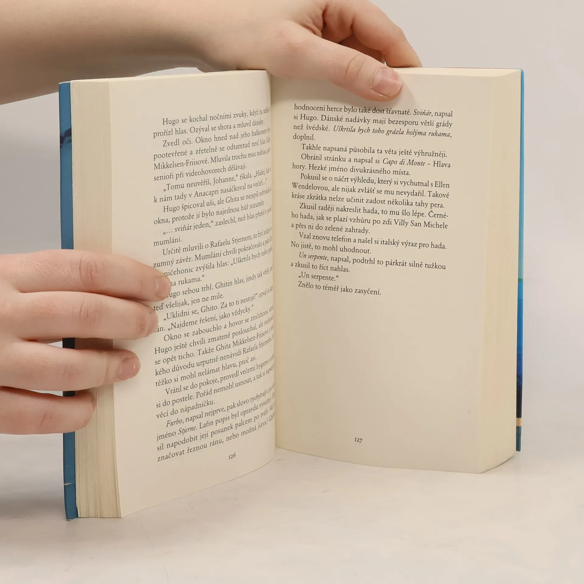Oddechová detektivka v klasickém stylu od mistra severské krimi. Stockholmský učitel dějepisu Hugo přijíždí společně s dalšími krajany na Capri užít si místní krajinu, kulturu a kulinářské speciality díky zájezdu od Belmonte Travels. Na okouzlující ostrov však padne stín, když je ve vodě pod nechvalně proslulým útesem Salto di Tiberio nalezeno tělo. Kdo je mrtvý muž a proč má v kapse brožuru jejich cestovní kanceláře? Vplížil se do ráje had, nebo je snad mezi turisty někdo, kdo neplánoval na Capri odpočívat, ale vraždit?