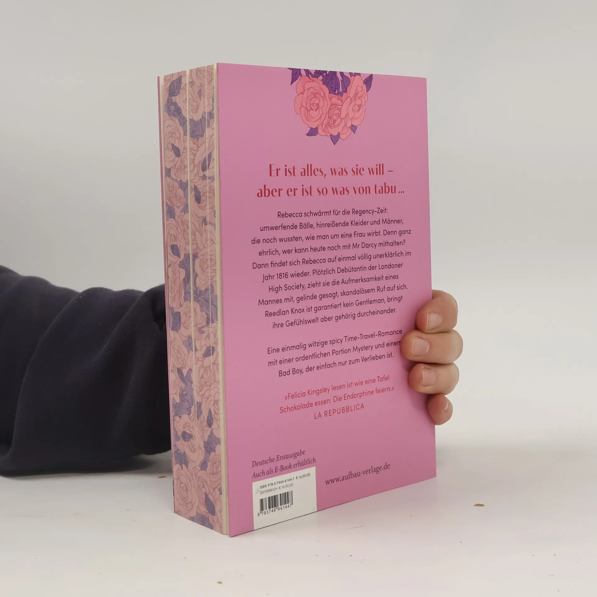 *** Mit wunderschönem gestaltetem Buchschnitt – limitiert auf die erste Auflage *** Einmalig witzige spicy Time-Travel-Romance mit einer ordentlichen Portion Mystery und einem Bad Boy, der einfach nur zum Verlieben ist. Er ist alles, was sie will aber er ist so was von tabu … Rebecca schwärmt für die Regency-Zeit: umwerfende Bälle, hinreißende Kleider und Männer, die noch wussten, wie man um eine Frau wirbt. Denn ganz ehrlich, wer kann heute noch mit Mr. Darcy mithalten? Dann findet sich Rebecca auf einmal völlig unerklärlich im Jahr 1816 wieder. Plötzlich Debütantin der Londoner High Society, zieht sie die Aufmerksamkeit eines Mannes mit, gelinde gesagt, skandalösem Ruf auf sich. Reedlan Knox ist garantiert kein Gentleman, bringt ihre Gefühlswelt aber gehörig durcheinander. »Felicia Kingsley lesen ist wie eine Tafel Schokolade essen: Die Endorphine feiern.« LA REPUBBLICA