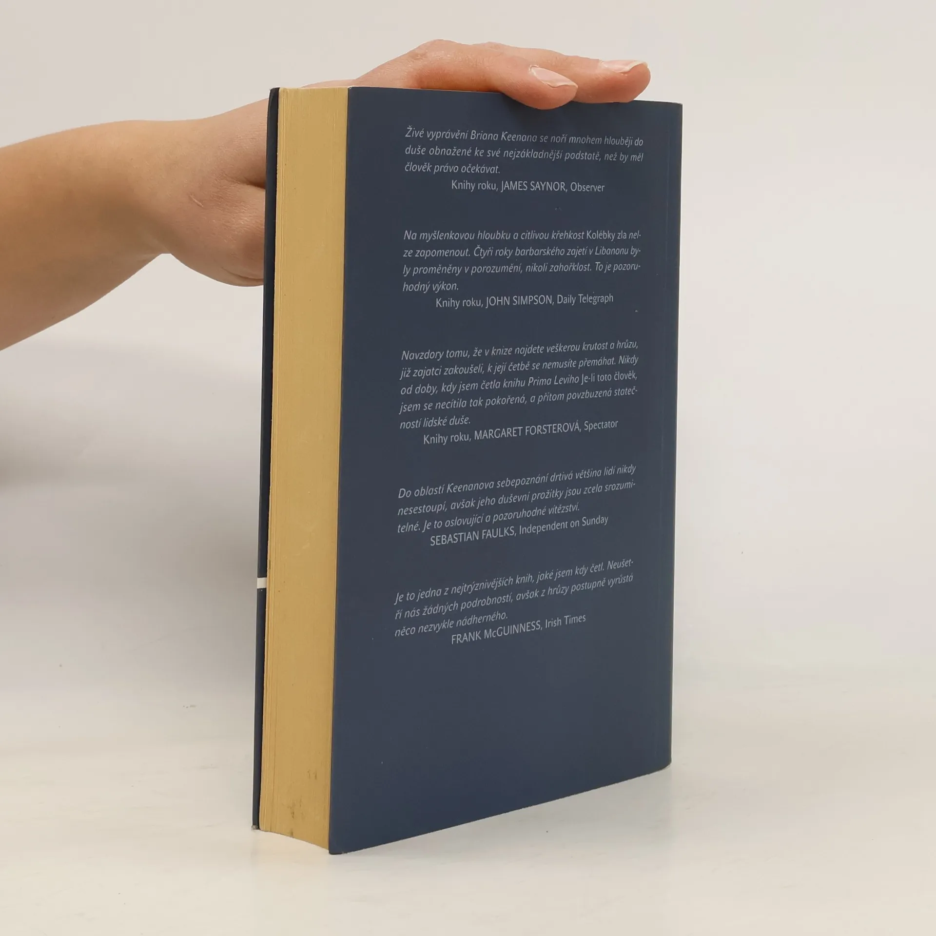 Autor byl zajat omylem (jako údajný Brit) v Libanonu v 80. letech 20. století. Když únosci odhalili jeho totožnost, bylo již pozdě, neboť příliš mnoho věděl. Zůstal uvězněn bezmála pět let. Ve své knize víceméně pomíjí vlastní příběh plný násilí a nenávisti a soustředí se na vnitřní svět člověka vystaveného extrémnímu tlaku. Roky prožité tváří v tvář každodennímu ponížení hodnotí jako životní zkušenost, která v něm probudila netušené schopnosti a pocity. Fyzická bolest se mu jeví jako mnohem méně významná ve srovnání se strádáním duše, proti kterému lze bojovat jen nezlomnou vůlí a humorem. Zajímavý je příběh jeho pevného přátelství se spoluvězněm, člověkem s odlišnými životními východisky, s nímž by se za normálních okolností těžko sblížil. Své mučitele nehodnotí s nenávistí, ale jakousi svéráznou empatií, ba dokonce s pochopením. Strohá, na laciné efekty rezignující kniha, vyznívá ve výsledku velice působivě. Základním kamenem této působivosti je přirozená a neochvějná lidskost.