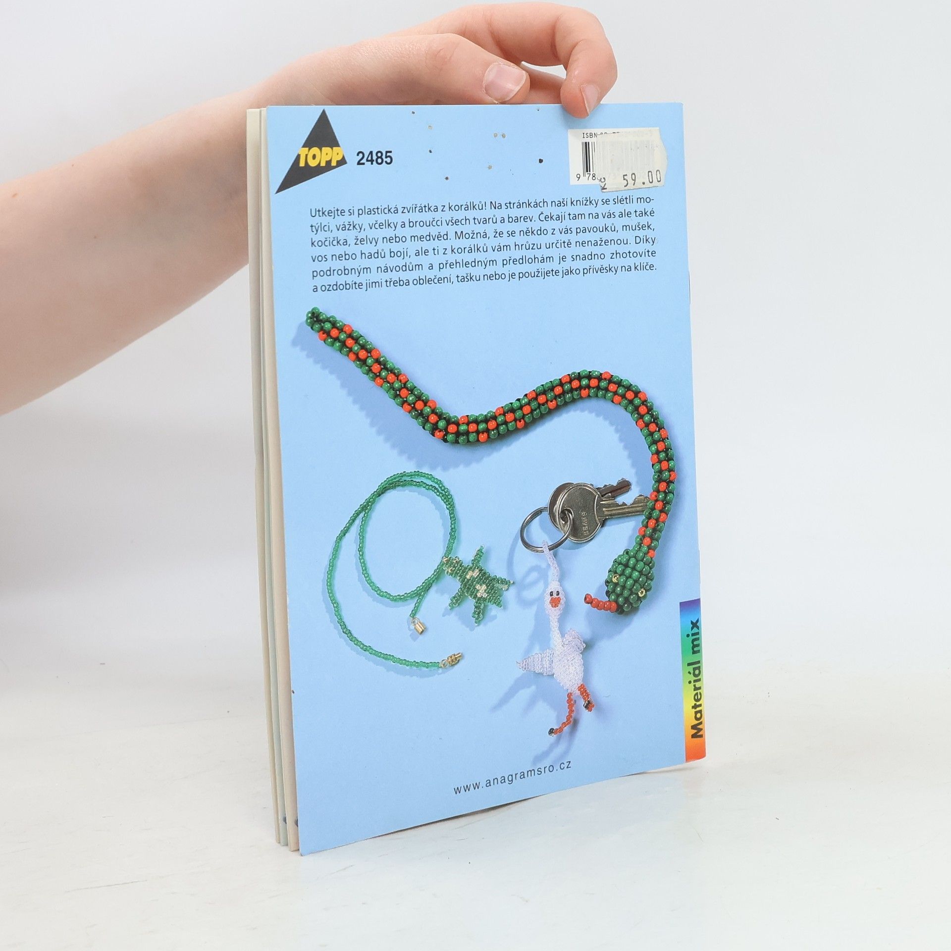 Vyrobte si plastická zvířátka z rokajlových korálků! Na stránkách naší knížky se houfují motýlci, vážky, včelky a broučci všech tvarů a barev. Čekají na vás také kočičky, želvy nebo medvěd. Možná, že se někdo z vás bojí pavouků, mušek, vos nebo hadů, ale ti z korálků vám hrůzu nenaženou. Díky podrobným návodům a přehledným obrázkům si je snadno vyrobíte a ozdobíte jimi třeba tašku nebo klíče.