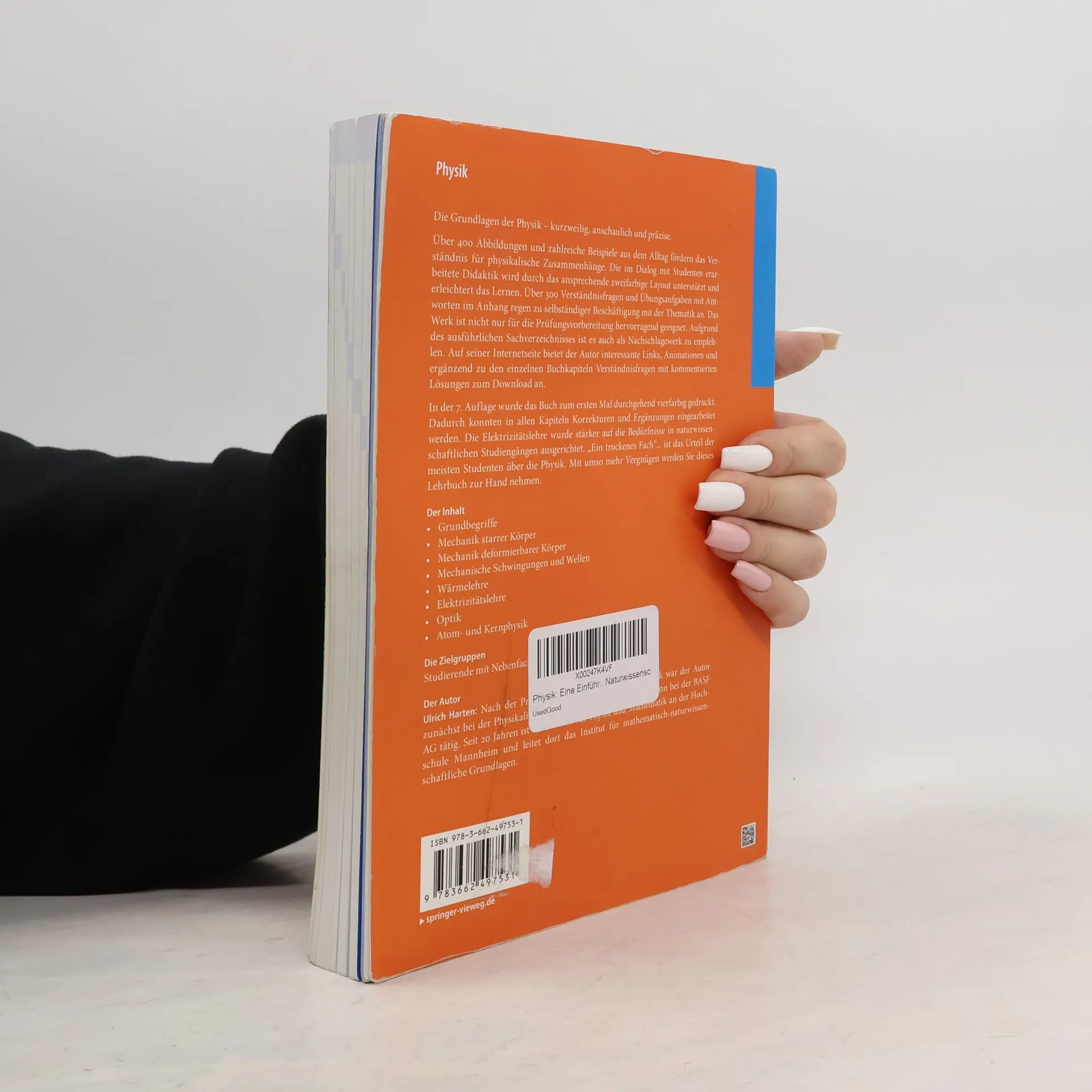 Die Grundlagen der Physik - kurzweilig, anschaulich und präzise. Über 400 Abbildungen und zahlreiche Beispiele aus dem Alltag fördern das Verständnis für physikalische Zusammenhänge. Die im Dialog mit Studenten erarbeitete Didaktik wird durch das ansprechende zweifarbige Layout unterstützt und erleichtert das Lernen. Über 300 Verständnisfragen und Übungsaufgaben mit Antworten im Anhang regen zu selbständiger Beschäftigung mit der Thematik an. Das Werk ist nicht nur für die Prüfungsvorbereitung hervorragend geeignet. Aufgrund des ausführlichen Sachverzeichnisses ist es auch als Nachschlagewerk zu empfehlen. Auf seiner Internetseite bietet der Autor interessante Links, Animationen und ergänzend zu den einzelnen Buchkapiteln Verständnisfragen mit kommentierten Lösungen zum Download an. In der 7. Auflage wurde das Buch zum ersten Mal durchgehend vierfarbig gedruckt. Dadurch konnten in allen Kapiteln Korrekturen und Ergänzungen eingearbeitet werden. Die Elek trizitätslehre wurde stärker auf die Bedürfnisse in naturwissenschaftlichen Studiengängen ausgerichtet. „Ein trockenes Fach"... ist das Urteil der meisten Studenten über die Physik. Mit umso mehr Vergnügen werden Sie dieses Lehrbuch zur Hand nehmen.