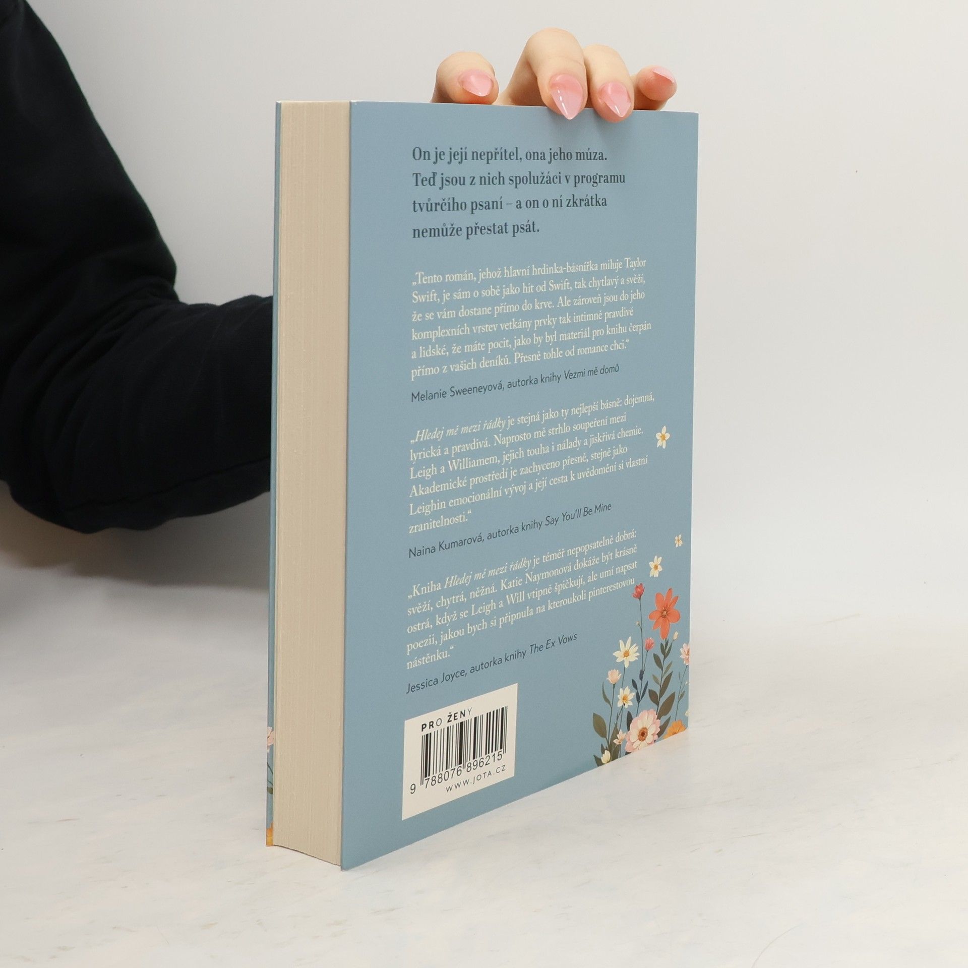 Ona ho nemůže vystát, on na ni nedokáže zapomenout. On je její nepřítel, ona jeho múza. Najdou se mezi řádky?Nikdo není překvapenější než sama Leigh, když se dostane na prestižní magisterský program, kde se během následujících dvou let hodlá zdokonalit v psaní poezie. Leigh bez zábran přiznává, že spíš než básně T. S. Eliota ji baví texty Taylor Swift. Navíc se nikdy nepřenesla přes kritická slova, kterými její básnickou tvorbu na střední škole zhodnotil Will, tehdejší platonická láska.Jako by nestačilo, že její spolužáci nosí v plátěných taškách všechny ty „správné“ autory a publikují v předních literárních časopisech, Leighina nejistota se ještě prohloubí, když se na seznamovacím dni objeví právě Will, dávná láska a nepřítel v jednom. Teď si nechává říkat William a je to přesně ten typ studenta, jaké Leigh nesnáší: v pletené vestě a s ohmataným koženým zápisníkem vypadá dokonale snobsky.Jenže v ročníku je jich příliš málo na to, aby se sobě mohli dlouhodobě vyhýbat. A když pak Will na jeden seminář přinese intimní báseň (která je možná, snad, rozhodně o Leigh), jsou oba nuceni si uvědomit, že v tom druhém je víc, než co je napsáno na papíře. A to, co je mezi řádky, může být mnohem zajímavější.
