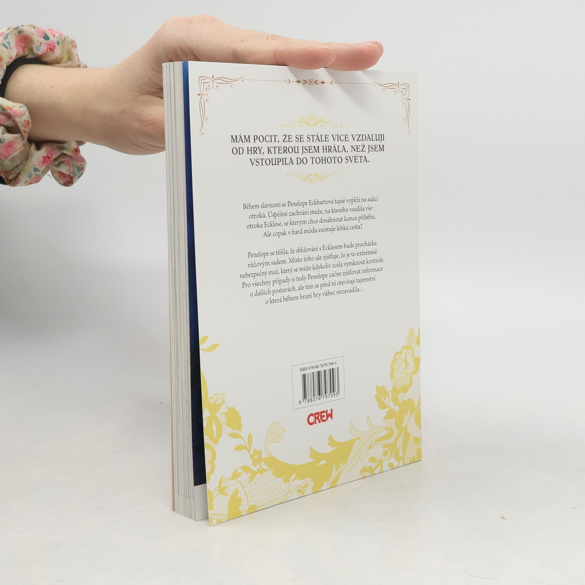 MÁM POCIT, ŽE SE STÁLE VÍCE VZDALUJI OD HRY, KTEROU JSEM HRÁLA, NEŽ JSEM VSTOUPILA DO TOHOTO SVĚTA. Během slavností se Penelope Eckhartová tajně vyplíží na aukci otroků. Úspěšně zachrání muže, na kterého vsadila vše: otroka Ecklese, se kterým chce dosáhnout konce příběhu. Ale copak vhard módu existuje lehká cesta? Penelope se těšila, že sbližování s Ecklesem bude procházka růžovým sadem. Místo toho ale zjišťuje, že je to extrémně nebezpečný muž, který se může kdykoliv zcela vymknout kontrole. Pro všechny případy si tedy Penelope začne zjišťovat informace o dalších postavách, ale tím se před ní otevírají tajemství, o která během hraní hry vůbec nezavadila…