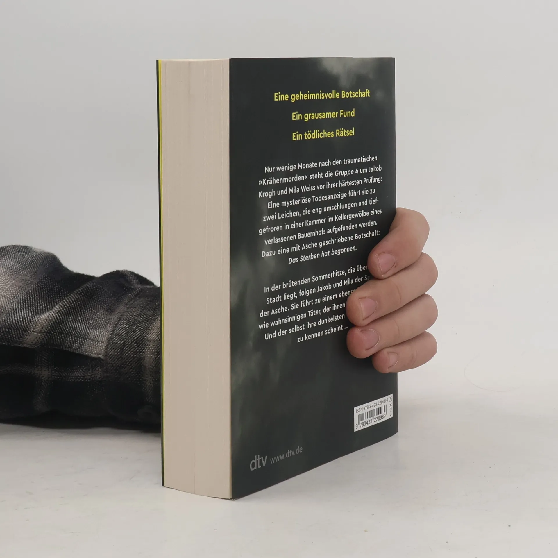 Das Sterben hat erst begonnen Nur wenige Monate nach den traumatischen Krähenmorden steht die Sonderermittlungsgruppe 4 um Jakob Krogh und Mila Weiss vor ihrer härtesten Prüfung: Eine mysteriöse Todesanzeige führt sie zu zwei Leichen, die eng umschlungen und tiefgefroren im Keller eines verlassenen Bauernhofs aufgefunden werden. Dazu eine mit Asche geschriebene Botschaft: Das Sterben hat begonnen. In der brütenden Sommerhitze, die über der Stadt liegt, folgen Jakob und Mila der Spur der Asche bis zu einem ebenso brillanten wie wahnsinnigen Täter, der ihnen weit voraus ist. Und der selbst ihre dunkelsten Geheimnisse zu kennen scheint …