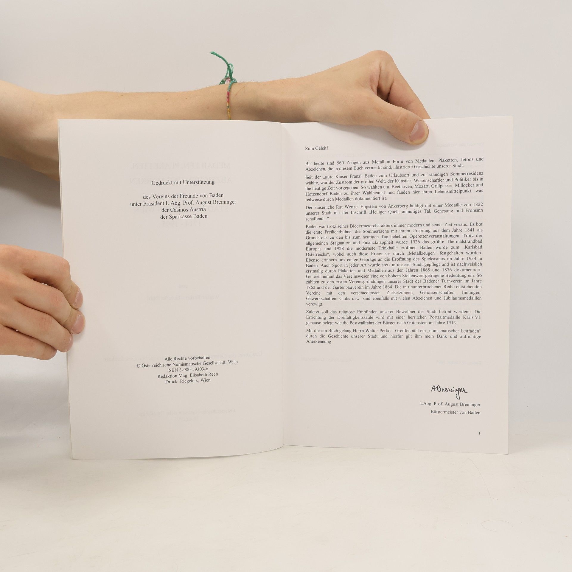 Medaillen, Plaketten, Abzeichen und Marken der Stadt Baden bei Wien 1714-1995, Walter PerkoGreiffenbühl