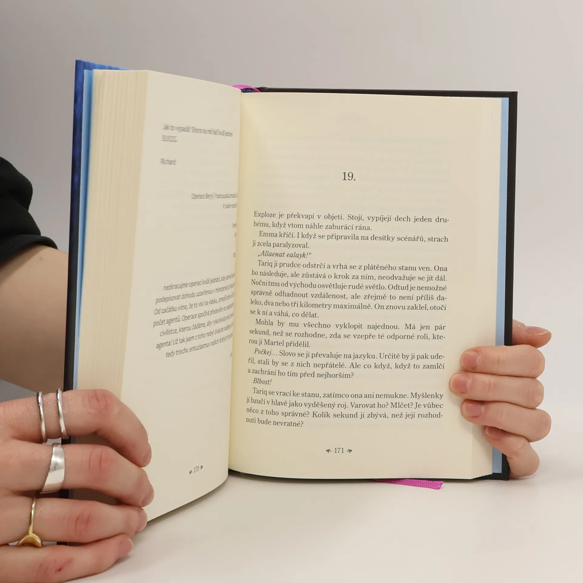 Napětí, špionáž a zničující láska. Debutový román ikony francouzského filmu. Emma, která pracuje jako masérka v jednom z bretaňských center thalassoterapie, přijme nabídku vyškolit personál luxusního wellness centra v Ománu. Exotická země ji zcela okouzlí, stejně jako šéf resortu, syn vlivného ministra. Neskutečně přitažlivý muž však za svým okouzlujícím úsměvem skrývá nejedno tajemství – a Emma se tak ocitá uprostřed smrtelně nebezpečných politických intrik. Začíná hra na kočku a myš plná pronásledování, nástrah a nečekaných zvratů. Emma se však nehodlá stát snadným terčem…