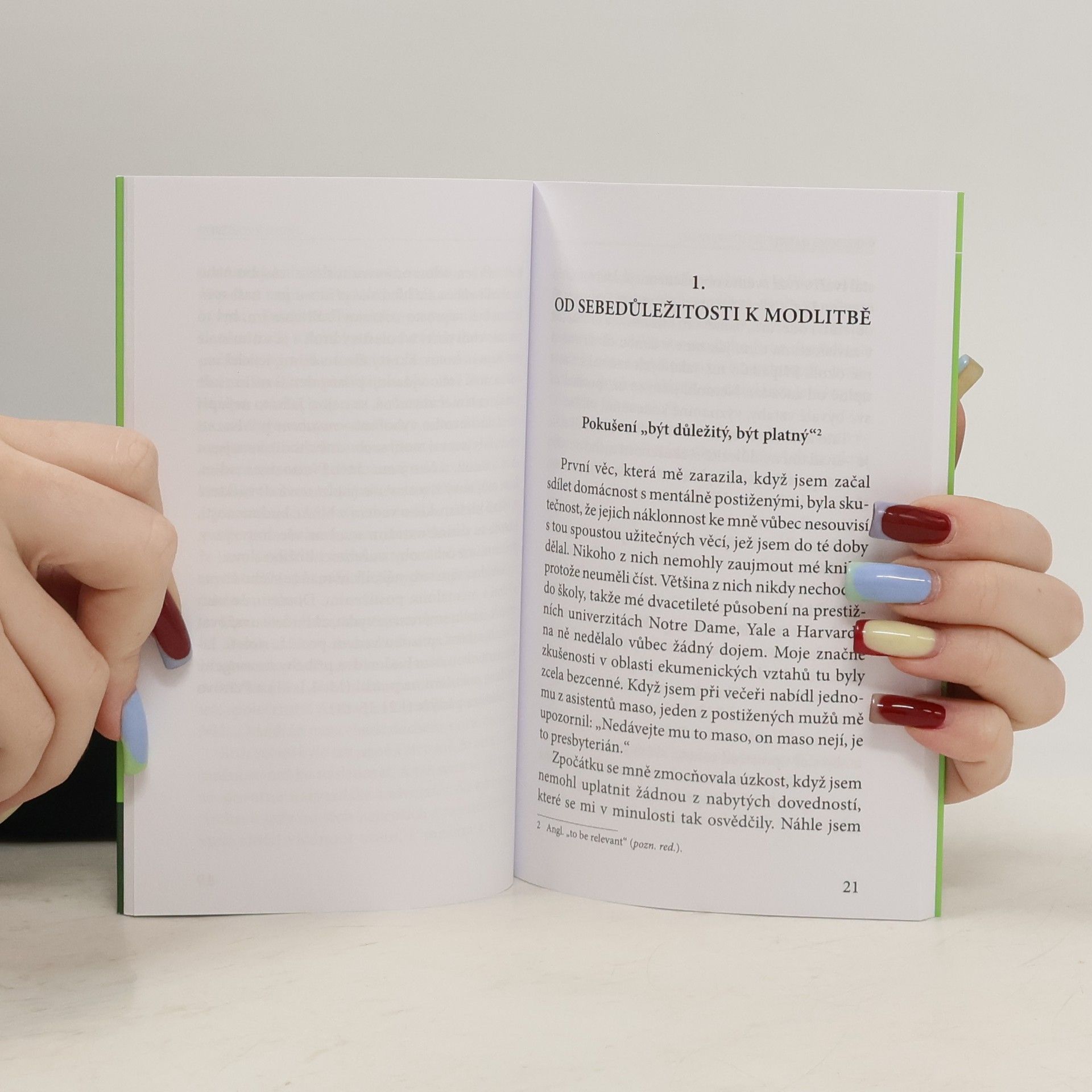 Známý kněz a spisovatel Henri Nouwen oslavil svou padesátku, když si uvědomil, že navzdory rostoucímu věhlasu duchovního mistra jeho vnitřní život stagnuje, je-li vůbec nějaký. Měl za sebou více než dvacetiletou kariéru univerzitního docenta, naposledy na prestižním Harvardu. Byl velice žádaný a vytížený, ale už se téměř nemodlil, trpěl rozervaností a pocitem osamělosti. Pán ho tehdy vyzval k radikální změně života: odešel do komunity Archa, kde pak sdílel život s mentálně postiženými a jejich ošetřovateli. Pozvání přednášet kněžím ve Washingtonu na téma „Křesťanské vedení v 21. století“ ho zastihlo v roce 1989 už v komunitě, tj. krátce po odchodu z Harvardu. Zprvu si nebyl jistý, že má co říct, ale ve světle své nové zkušenosti dal nakonec dohromady několik zásadních postřehů a podnětů ke změně. Jeho přednáška měla velký ohlas a záhy vyšla i knižně pod názvem V Ježíšově jménu. Od té doby doslova obletěla svět – dočkala se téměř dvaceti vydání jen v angličtině a mnoha překladů do cizích jazyků. S velkým užitkem ji čtou lidé ve službě vedení napříč křesťanskými církvemi: kněží, kazatelé, pastoři i studenti připravující se na službu v církvi.