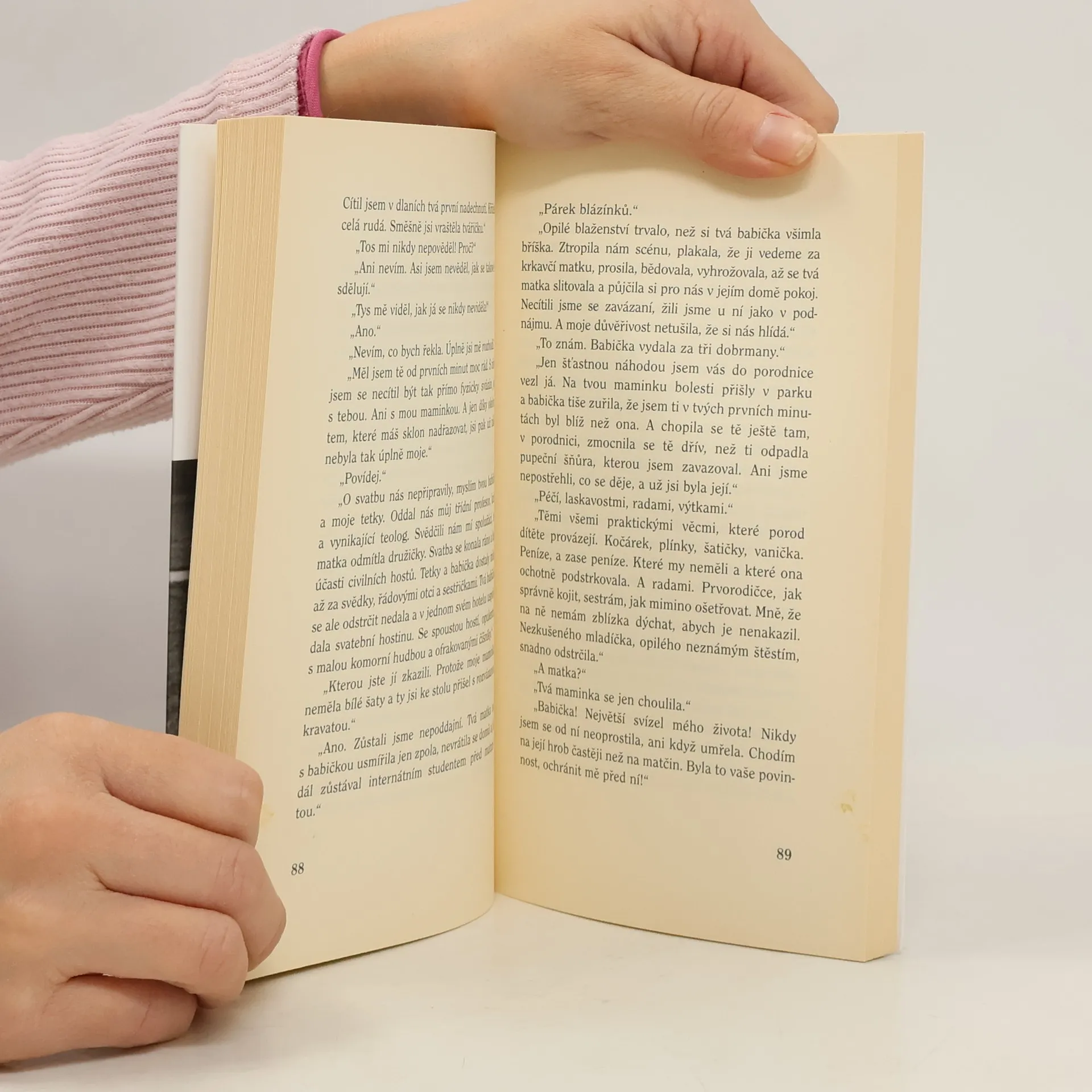 Láskyplný příběh. Celý se rozprostírá v otázkách a odpovědích dvou blízkých, navzájem provázaných osob. Otce a dcery. Samo povídání je příběhem. Příběh se v něm skrývá, a zároveň se z něj právě rodí. Je neslyšně strukturován autorčiným jemnocitem pro postupné poodhalování životních peripetií, vtipných okamžiků, krutých nebo dramatických okolností, nám neznámých osudů ve zdánlivě neuspořádané, ale vyhrocené formě, v rozhovoru. Příběhem se vine po celou dobu linie návratu, ohlédnutí, účtování, osvobozování, znovuobjevování, linie citu.