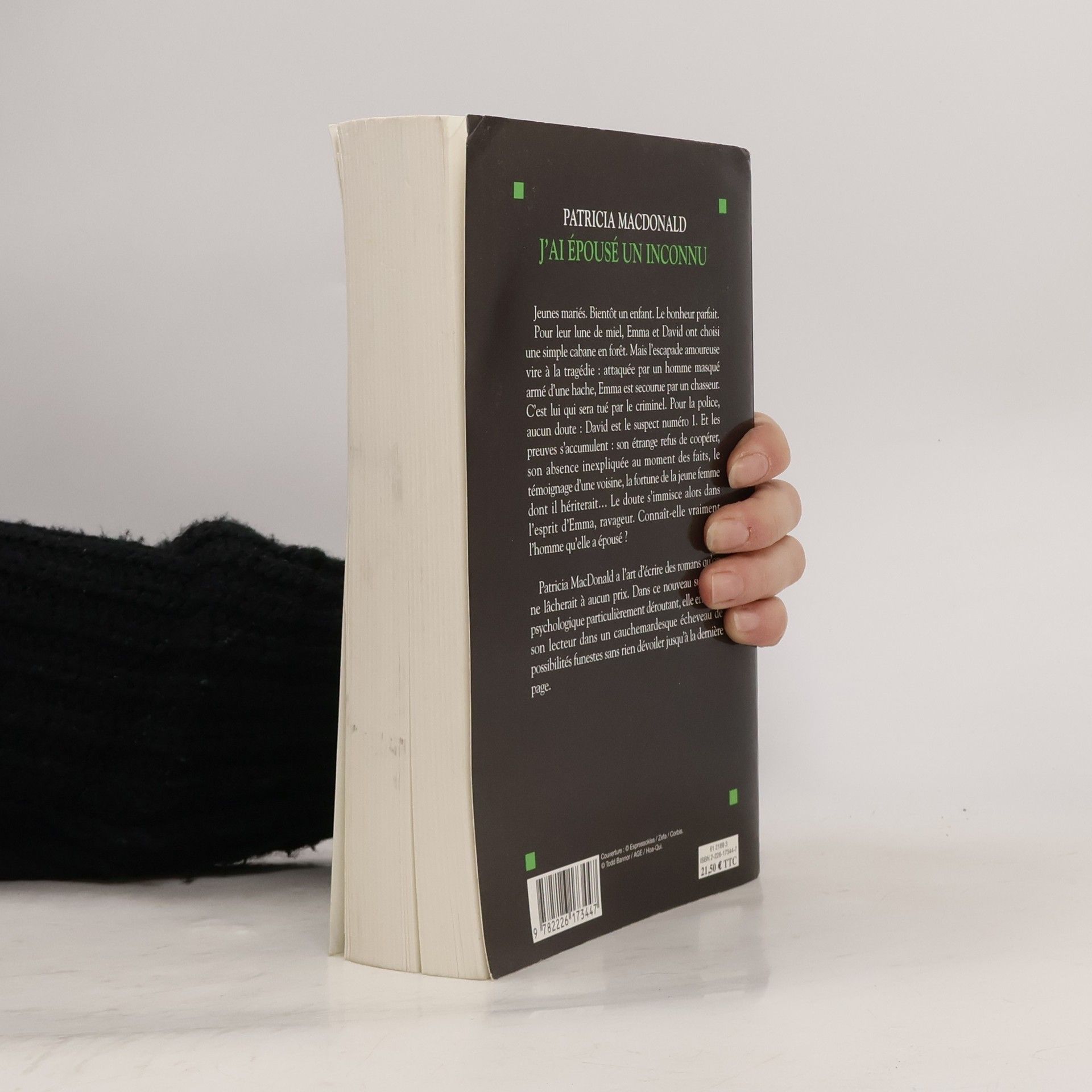 Jeunes mariés. Bientôt un enfant. Le bonheur parfait. Pour leur lune de miel, Emma et David ont choisi une simple cabane en forêt. Mais l'escapade amoureuse vire à la tragédie : attaquée par un homme masqué armé d'une hache, Emma est secourue par un chasseur. C'est lui qui sera tué par le criminel. Pour la police, aucun doute : David est le suspect numéro l. Et les preuves s'accumulent : son étrange refus de coopérer, son absence inexpliquée au moment des faits, le témoignage d'une voisine, la fortune de la jeune femme dont il hériterait... Le doute s'immisce alors dans l'esprit d'Emma, ravageur. Connaît-elle vraiment l'homme qu'elle a épousé ? Patricia MacDonald a l'art d'écrire des romans qu'on ne lâcherait à aucun prix. Dans ce nouveau suspense psychologique particulièrement déroutant, elle entraîne son lecteur dans un cauchemardesque écheveau de possibilités funestes sans rien dévoiler jusqu'à la dernière page.
