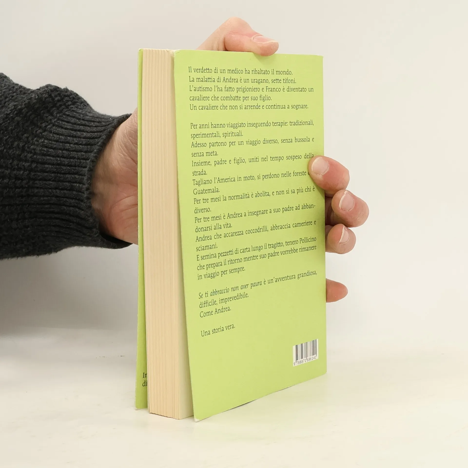 Il verdetto di un medico ha ribaltato il mondo. La malattia di Andrea è un uragano, sette tifoni. L'autismo l'ha fatto prigioniero e Franco è diventato un cavaliere che combatte per suo figlio. Un cavaliere che non si arrende e continua a sognare. Per anni hanno viaggiato inseguendo terapie: tradizionali, sperimentali, spirituali. Adesso partono per un viaggio diverso, senza bussola e senza meta. Insieme, padre e figlio, uniti nel tempo sospeso della strada. Tagliano l'America in moto, si perdono nelle foreste del Guatemala. Per tre mesi la normalità è abolita, e non si sa più chi è diverso. Per tre mesi è Andrea a insegnare a suo padre ad abbandonarsi alla vita. Andrea che accarezza coccodrilli, abbraccia cameriere e sciamani. E semina pezzetti di carta lungo il tragitto, tenero Pollicino che prepara il ritorno mentre suo padre vorrebbe rimanere in viaggio per sempre.