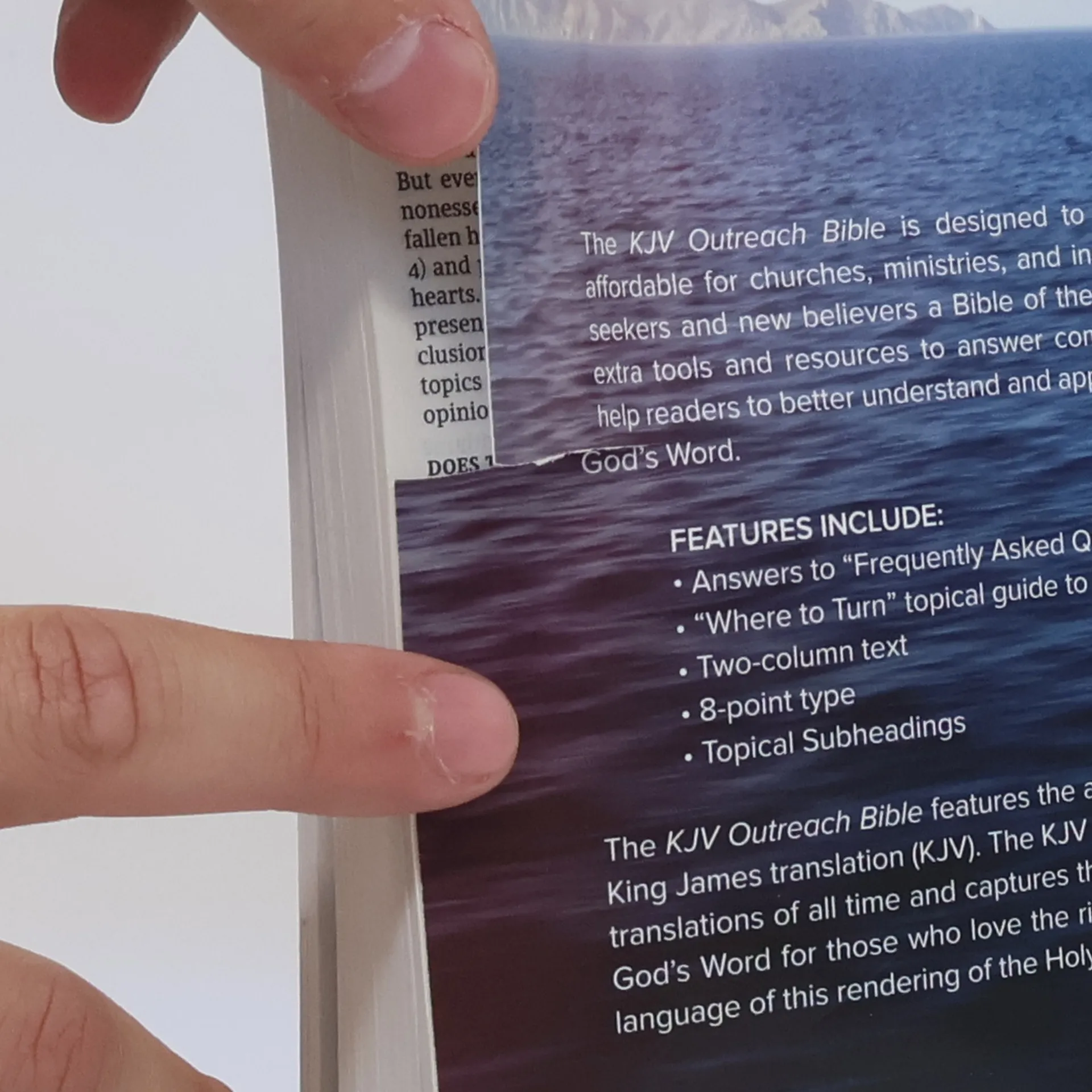 The KJV Outreach Bible contains the complete KJV text and is designed for churches, ministries, and individuals to provide seekers the Word of God with ancillary resources to answer common questions and gradually draw them into reading the Scriptures. Features include: Answers to “Frequently Asked Questions,” “Where to Turn” topical guide to scripture, Two-column text, 7.75-point type, and Topical Subheadings. The KJV Outreach Bible features the authorized version of the King James translation (KJV). The KJV is one of the best-selling translations of all time and captures the beauty and majesty of God’s Word for those who love the rich heritage and reverent language of this rendering of the Holy Bible.