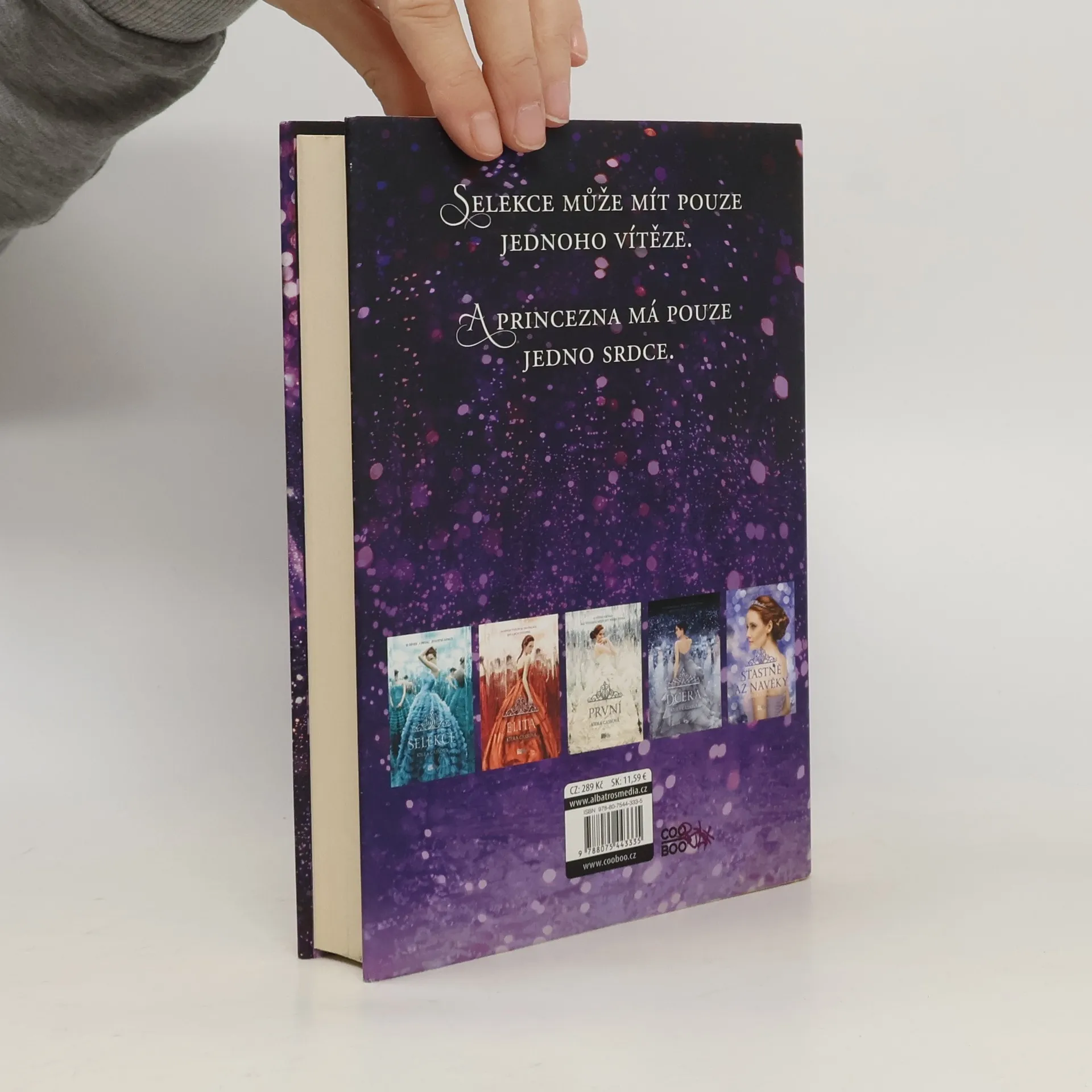 Pět dílů Selekce v jednom boxu! Pro třicet pět dívek je Selekce životní šancí. Příležitostí k útěku od života, který jim byl stanoven od narození. Možnost žít v paláci a soutěžit o srdce krásného prince Maxona. Ale pro Americu je soutěž noční můrou. Znamená pro ni otočit se zády ke své tajné lásce Aspenovi, který je o kastu níž než ona. Odejít z domova a vstoupit do nelítostné soutěže o korunu se jí nechce. Pak America potká prince Maxona – a uvědomí si, že život, o kterém vždycky snila, si už nedokáže představit. Jak soutěž pokračuje, America se musí nejen rozhodnout mezi dvěma muži, ale především řešit problémy, které se týkají celé země a společnosti. O dvacet let později se Selekce musí zúčastnit i následnice trůnu Eadlyn, která je i přes nátlak okolí odhodlaná soutěže využít ke svým cílům. Nebude však nakonec láska silnější než rozum?