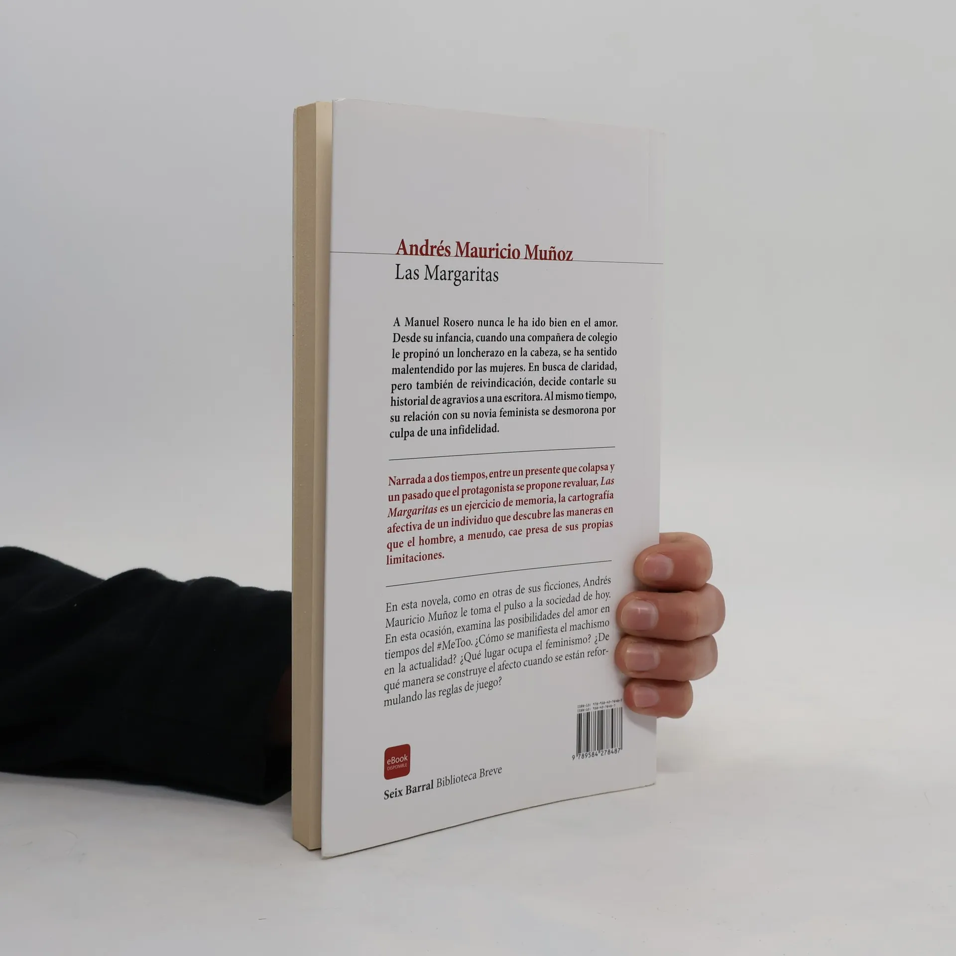 "A Manuel Rosero nunca le ha ido bien en el amor. Desde su infancia, cuando una compañera de colegio le propinó un loncherazo en la cabeza, se ha sentido malentendido por las mujeres. En busca de claridad, pero también de reivindicación, decide contarle su historial de agravios a una escritora. Al mismo tiempo, su relación con su novia feminista se desmorona por culpa de una infidelidad. Narrada a dos tiempos, entre un presente que colapsa y un pasado que el protagonista se propone revaluar, Las margaritas es un ejercicio de memoria, la cartografía afectiva de un individuo que descubre las maneras en que el hombre, a menudo, cae presa de sus propias limitaciones. En esta novela, como en otras de sus ficciones, Andrés Mauricio Muñoz le toma el pulso a la sociedad de hoy. En esta ocasión, examina las posibilidades del amor en tiempos de #MeToo. ¿Cómo se manifiesta el machismo en la actualidad? ¿Qué lugar ocupa el feminismo? ¿De qué manera se construye el afecto cuando se están reformulando las reglas de juego?"--Back cover.
