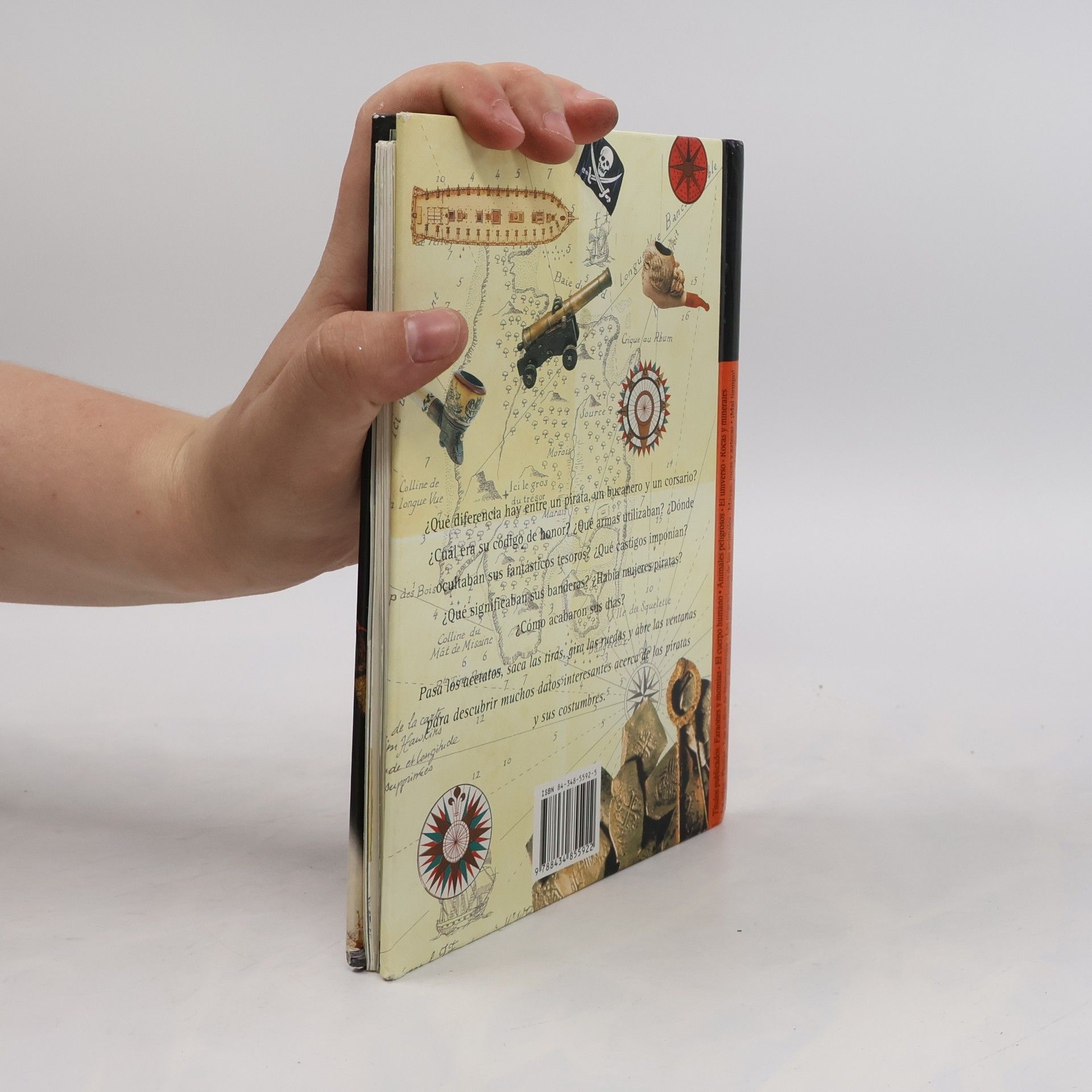¿Qué diferencia hay entre un pirata, un bucanero y un corsario? ¿Cuál era su código de honor? ¿Qué armas utilizaban? ¿Dónde ocultaban sus fantásticos tesoros? ¿Qué castigos imponían? ¿Qué significaban sus banderas? ¿Había mujeres piratas? ¿Cómo acabaron sus días? Éstas son algunas de las cuestiones tratadas en este libro interactivo que incluye acetatos, tiras, ventanas y desplegables.