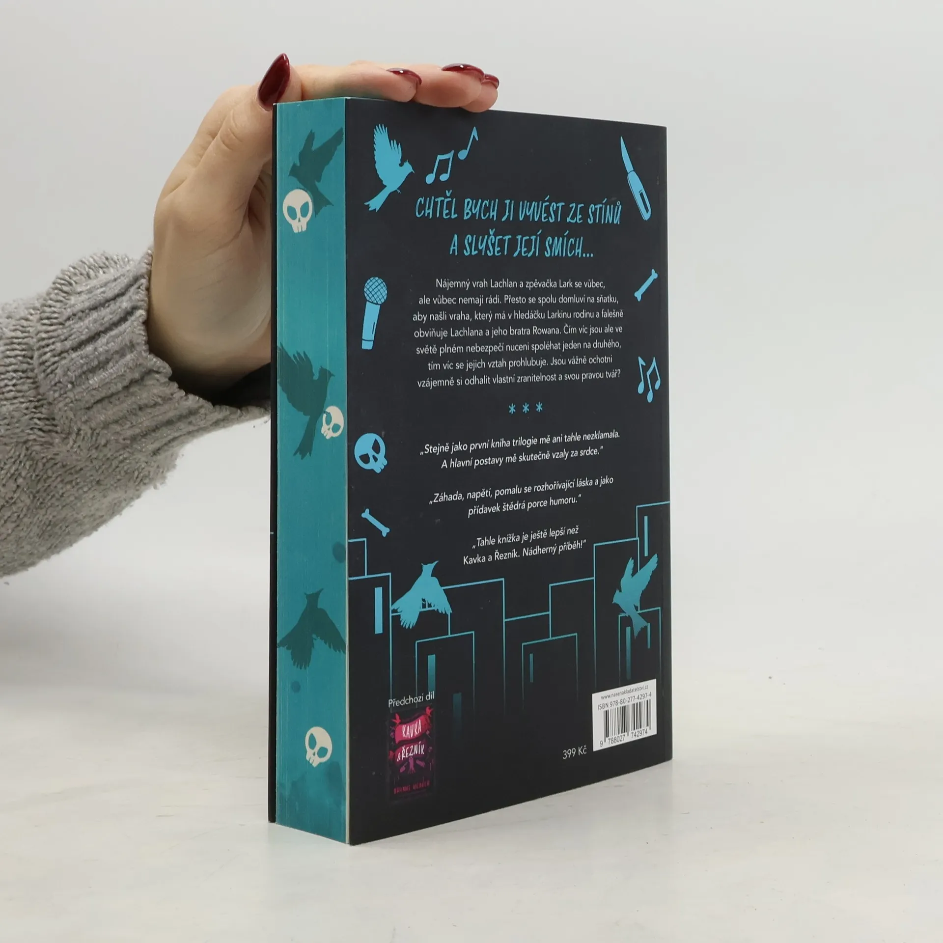 Nájemný vrah Lachlan Kane touží po klidném životě ve své kožedělné dílně a chce zapomenout na traumata z minulosti. Když ale zpacká zakázku pro nejvýznamnějšího klienta svého šéfa, uvědomí si, že se z podsvětí nikdy nedostane. Alespoň dokud mu zpěvačka Lark Montagueová nenabídne dohodu: pomůže jí najít vraha a ona mu zajistí svobodu. Má to ale jeden háček. Nejdřív si ji musí vzít. A druhý háček: Ti dva se nesnáší. Indie zpěvačka a skladatelka Lark je jako paprsek slunce, který přemůže každý mrak a pronikne do každé skulinky, kterou se Lachlan Kane snaží skrýt. Lachlan, svérázný starší bratr spřízněné duše její nejlepší kamarádky, ji považuje za privilegovanou princeznu, ale Lark skrývá ve stínu svého jasného světla nejedno tajemství. Protože její rodina je v troskách a štěstí nejlepší kamarádky visí na vlásku, je ochotná složit slib muži, kterého je odhodlaná nenávidět, bez ohledu na to, jak přitažlivý ten zamlklý zabiják může být. Jak Lachlan a Lark společně procházejí temným světem, je čím dál obtížnější rozeznat, co je v jejich manželství falešné a co skutečné. Ale nepronásledují je jen nebezpečí, jež si dobře uvědomují. Číhá na ně taky přízrak, který touží po pomstě.
