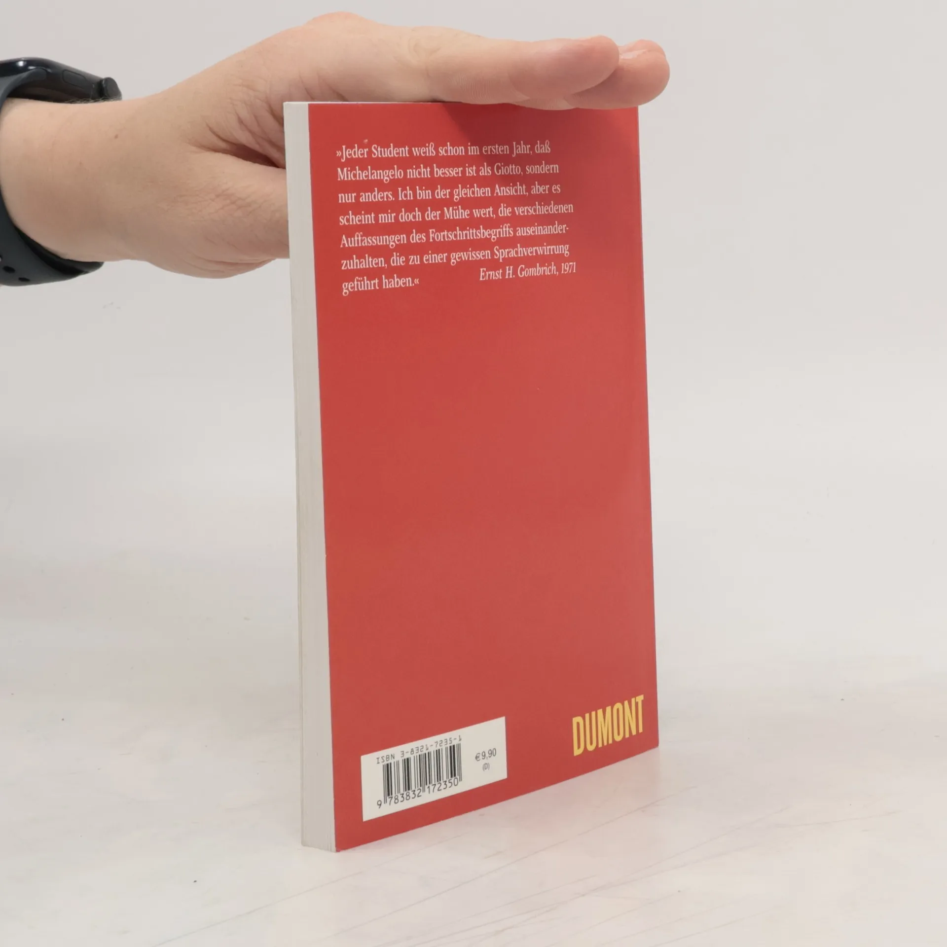 In der Kunstgeschichtsschreibung wird der Begriff des Fortschritts gerne vermieden. Gombrich stellte zu Beginn der siebziger Jahre die Krise des Fortschrittsglaubens ins Zentrum seiner Betrachtung, mit dem Ziel, die verschiedenen Auffassungen des Fortschrittbegriffs zu entwirren. Er beschreibt hierbei zwei Pole: den „Primitivismus„, der nach allgemeingültiger Wahrheit sucht, und den „Modernismus“, der in fortschreitender Bewegung nur das jeweils Neueste gelten lassen will. In Kunst und Fortschritt spricht sich Gombrich gegen einen unkritischen Fortschrittsglauben aus und fordert die Prüfung des jeweils gültigen Fortschrittsbegriffs immer wieder aufs Neue – eine Forderung die seit dem 11. September 2001 aktueller ist als je zuvor. In der zweiten Hälfte der sechziger und den frühen siebziger Jahre, im Zuge eines sich insgesamt wandelnden geistigen und politischen Klimas in Deutschland forcierte der DuMont Verlag durch Herausgabe einiger ihrer wichtigsten Werke die publizistische Repatriierung und Rehabilitierung der 1933 zur Emigration gezwungenen Kunstwissenschaftler. Eine vernunftgeleitete, den Axiomen eines konsequenten Aufklärungsdenkens verpflichtete Schule, die im angelsächsischen Raum bereits wichtige Impulse gegeben hatte, kam nun auch in Deutschland wieder zu ihrem Recht.