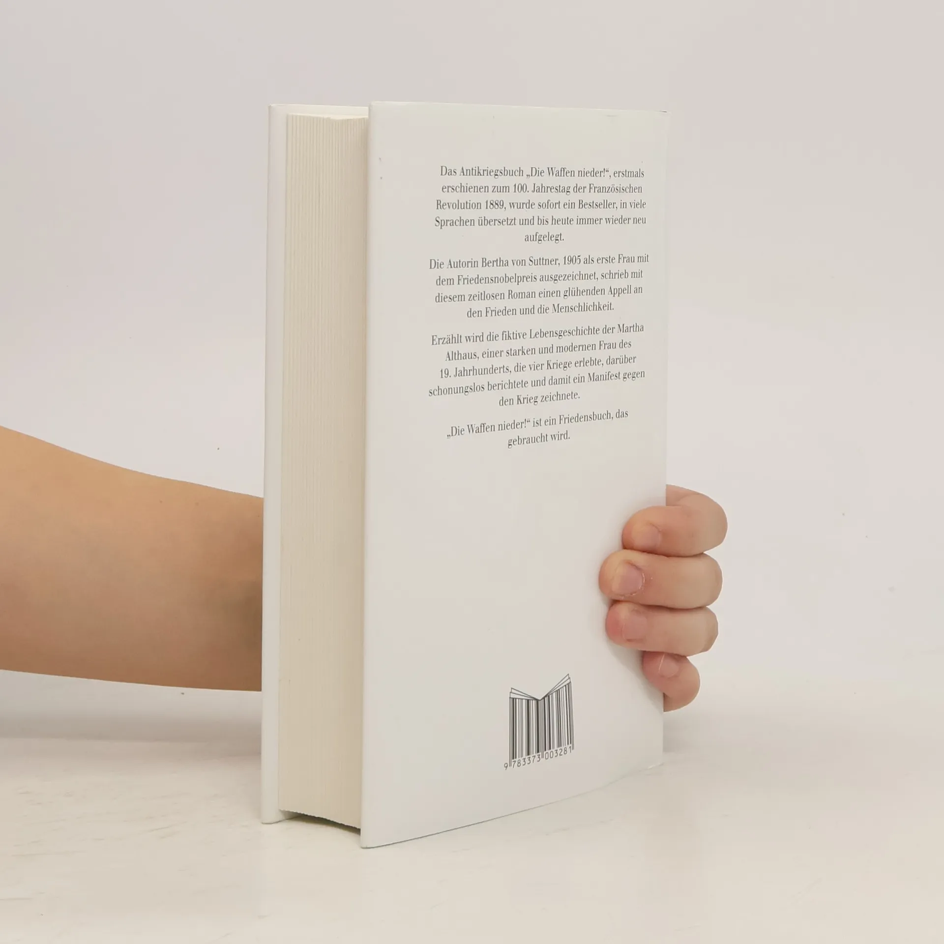 Komtess Martha Althaus, die spätere Gräfin Dotzky, gehörte zu jenen jungen Frauen der Wiener Hocharistokratie Ende des 19. Jahrhunderts, die alles hatten, was sie nur begehren konnten: Reichtum, Rang und Liebe. Nach kurzer Ehe jedoch verliert sie den Mann und Vater ihres Kindes „ans Vaterland“ in Italien, wo Österreich gegen Sardinien und Frankreich kämpft. Da beginnt sie aus ihren konkreten Erfahrungen mit dem menschenverachtenden Unsinn und der Widernatürlichkeit des Krieges Schlüsse zu ziehen, die in der allgemeinen Öffentlichkeit auf Unverständnis stossen und sie in krassen Widerspruch zu ihrer Gesellschaftsschicht bringen. Dieses Buch, 1889 erstmalig erschienen, erreichte bis 1905 37 Auflagen; übersetzt in 16 Sprachen, wurde es zu einem Welterfolg. Die Erkenntnisse der Ich-Erzählerin sind für uns heute nicht nur von historischem Interesse, sondern werfen Fragen auf, die auch 100 Jahre nach ihrer Niederschrift von beklemmender Aktualität sind