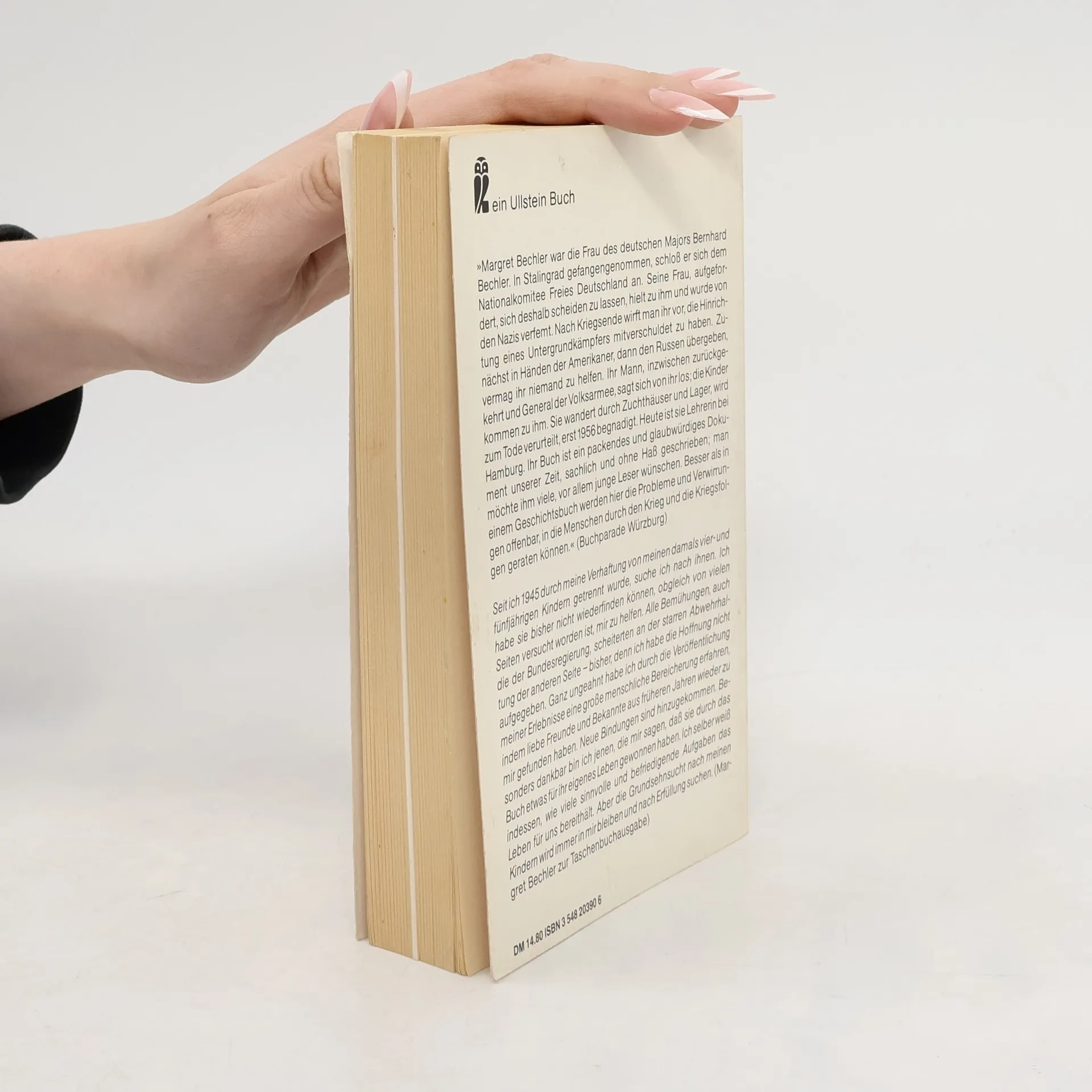 Margret Bechler war die Frau des deutschen Majors Bernhard Bechler. In Stalingrad gefangengenommen, schloß er sich dem Nationalkomitee Freies Deutschland an. Seine Frau, aufgefordert, sich scheiden zu lassen, hielt zu ihm und wurde von den Nazis verfemt. Nach Kriegsende wirft man ihr vor, die Hinrichtung eines Untergrundkämpfers mitverschuldet zu haben. Sie wird verhaftet, wandert durch Zuchthäuser und Lager, wird zum Tode verurteilt, erst 1956 begnadigt. Ihr Buch ist ein packendes und glaubwürdiges Dokument unserer Zeit, sachlich und ohne Haß geschrieben. Besser als in einem Geschichtsbuch werden hier die Probleme und Verwirrungen offenbar, in die Menschen durch den Krieg und die Kriegsfolgen geraten können.