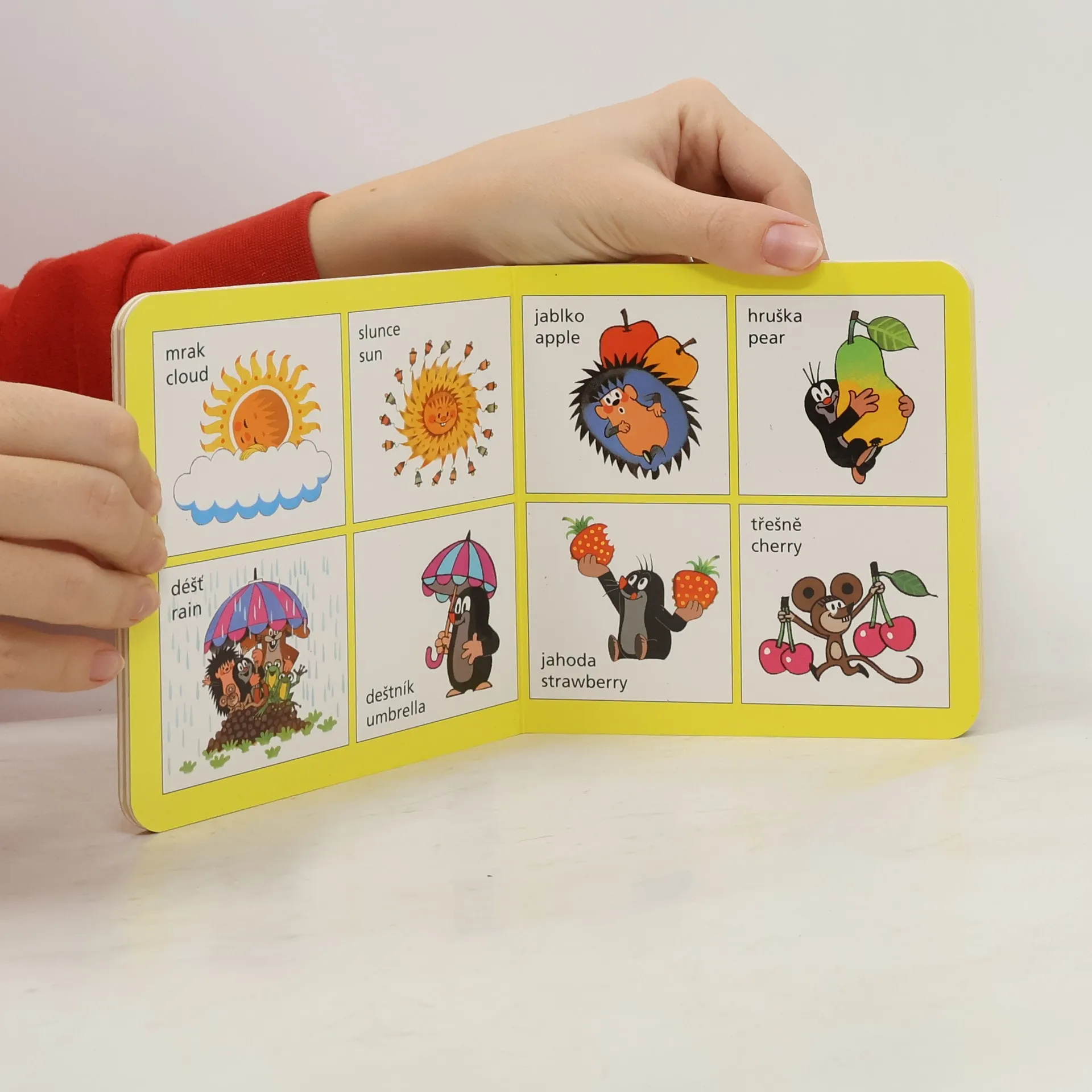 Dětské leporelo obsahuje obrázkový slovníček 36 anglických slov, včetně českého překladu a anglické výslovnosti. K dobrému zapamatování slovíček pomůže dětem jejich oblíbený Krteček.