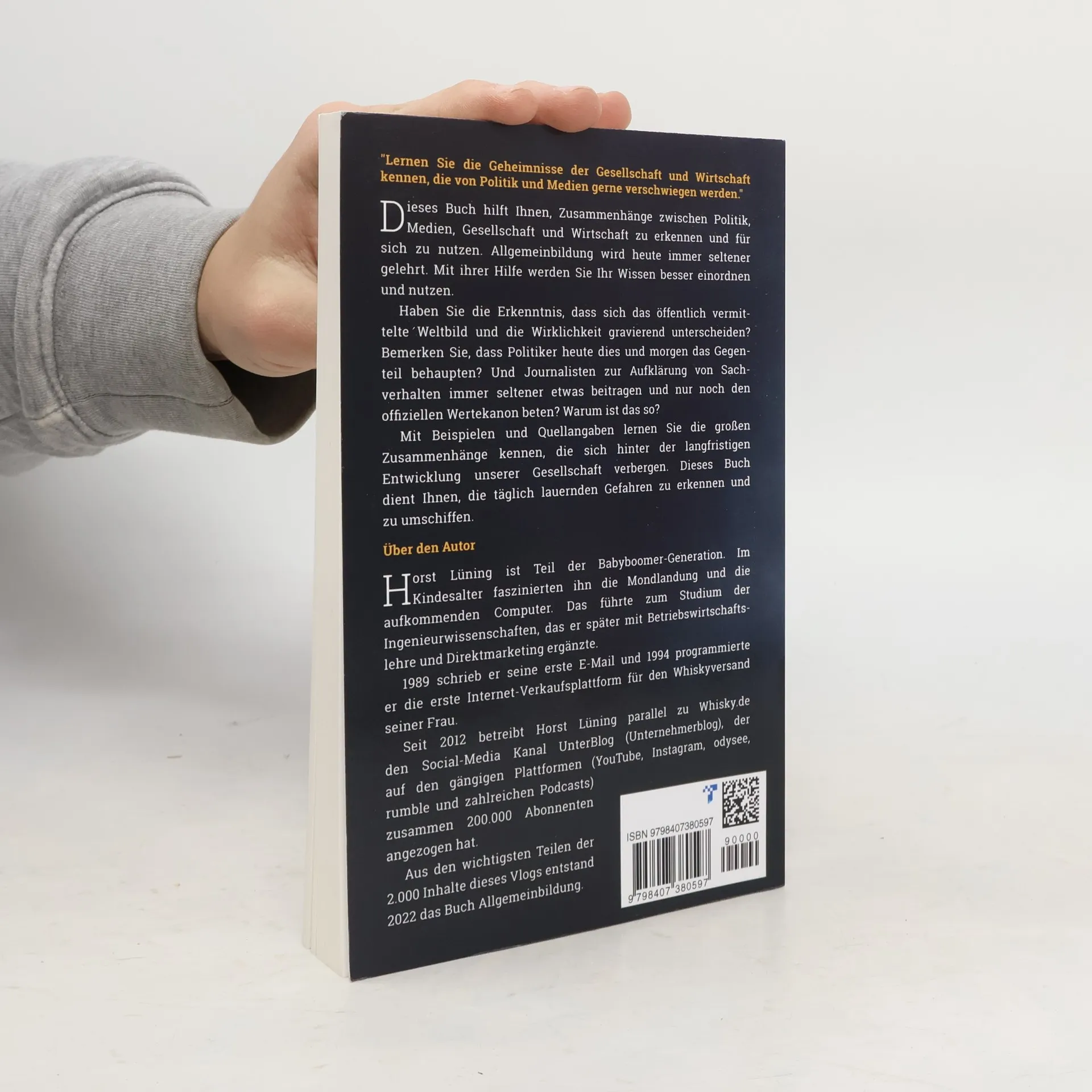Entdecken Sie die verborgenen Zusammenhänge zwischen Gesellschaft, Wirtschaft, Politik und Medien, die oft verschwiegen werden. Dieses Buch hilft Ihnen, die komplexen Beziehungen zu erkennen und Ihr Wissen gezielt zu nutzen. In einer Zeit, in der Allgemeinbildung immer weniger vermittelt wird, bietet es Ihnen die Möglichkeit, Ihr Verständnis zu vertiefen. Haben Sie bemerkt, dass das öffentliche Weltbild und die Realität oft stark voneinander abweichen? Politische Aussagen scheinen sich ständig zu widersprechen, während Journalisten zunehmend den offiziellen Narrativen folgen, anstatt aufzuklären. Warum ist das so? Anhand von Beispielen und Quellen erfahren Sie von den grundlegenden Zusammenhängen, die die langfristige Entwicklung unserer Gesellschaft prägen. Das Buch hilft Ihnen, die täglichen Gefahren zu erkennen und zu umgehen. Der Autor, Horst Lüning, ist Teil der Babyboomer-Generation und wurde in seiner Kindheit von der Mondlandung und den aufkommenden Computern fasziniert. Er studierte Ingenieurwissenschaften und ergänzte dies mit Betriebswirtschaftslehre und Direktmarketing. 1989 schrieb er seine erste E-Mail und 1994 entwickelte er die erste Internet-Verkaufsplattform für den Whiskyversand seiner Frau. Seit 2012 betreibt er den Social Media-Kanal UnterBlog, der über 200.000 Abonnenten gewonnen hat. Aus den Inhalten dieses Video-Blogs entstand 2022 das Buch zur Allgemeinbildung.