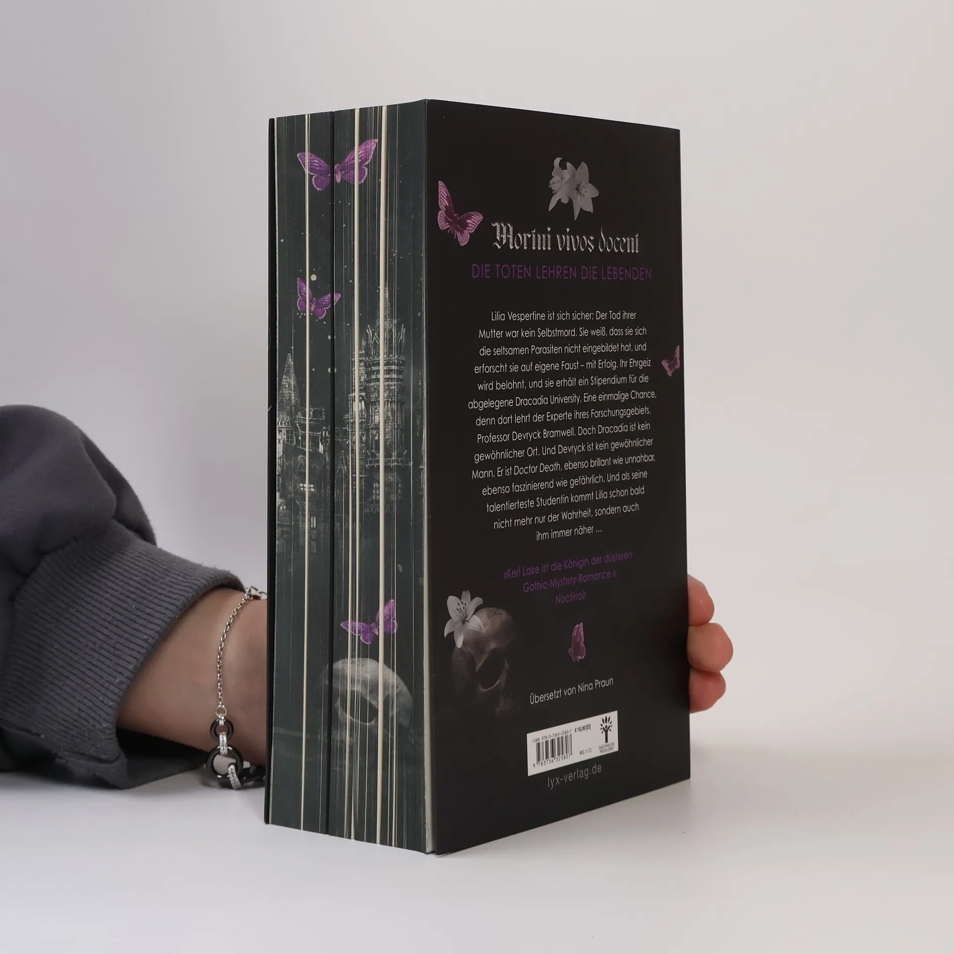 Dieses Buch gibt es in zwei Versionen: mit und ohne Motiv-Farbschnitt. Sobald die Farbschnitt-Ausgabe ausverkauft ist, liefern wir die Ausgabe ohne Farbschnitt aus. »Du bist wie eine Krankheit in mir, die darum bettelt, niemals geheilt zu werden ...« Lilia Vespertine ist besessen davon, die Wahrheit über den Tod ihrer Mutter herauszufinden. Sie weiß, dass sie sich die seltsamen Parasiten nicht eingebildet hat, und erforscht sie auf eigene Faust — mit Erfolg. Ihr Ehrgeiz wird belohnt und sie erhält ein Stipendium für die abgelegene Dracadia Universität. Eine einmalige Chance, denn dort lehrt Professor Devryck Bramwell, der Experte ihres Forschungsgebiets. Gemeinsam suchen sie nach den Antworten auf ihre Fragen, wobei der junge, unnahbare Professor und die talentierte Studentin ständig aneinander geraten. Doch »Doctor Death« weiß mehr, als er zugeben mag und Lilia kommt nicht nur der Wahrheit, sondern auch ihm immer näher ... Ein Einzelband von Keri Lake, der Queen der Gothic Romance