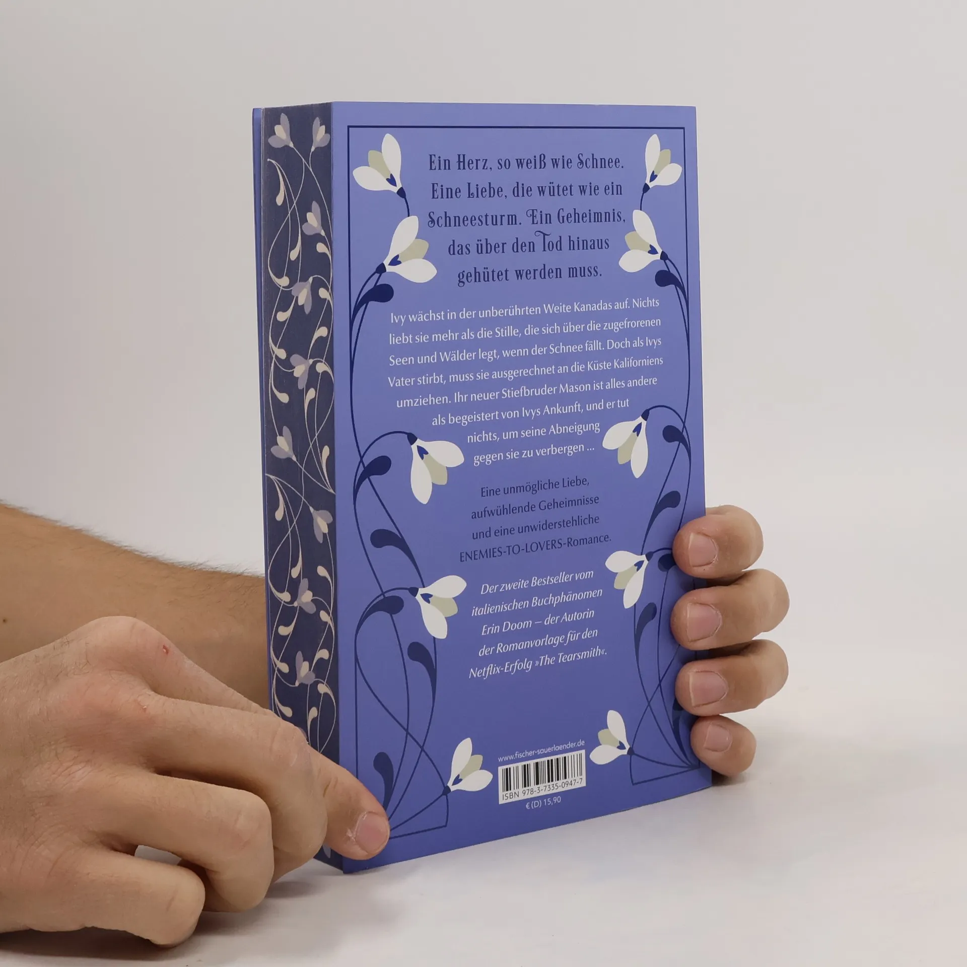 Nach dem Netflix-Erfolg: Die neue unwiderstehliche Enemies-to-Lovers-Romance von Erin Doom Ein Herz, so weiß wie Schnee. Eine Liebe, die wütet wie ein Schneesturm. Ein Geheimnis, das über den Tod hinaus gehütet werden muss. Ivy wächst in der unberührten Weite Kanadas auf. Nichts liebt sie mehr als die Stille, die sich über die zugefrorenen Seen und Wälder legt, wenn der Schnee fällt. Doch als Ivys Vater stirbt und damit ihre ganze Familie, muss sie ihre Herzenslandschaft hinter sich lassen. Ihr Patenonkel John und sein Sohn Mason sind bereit, sie in ihrem Zuhause an der Küste Kaliforniens aufzunehmen. Und so versucht Ivy, sich in den rauschenden Wellen ihres neuen Lebens über Wasser zu halten. Doch während die wunderschönen, aber eiskalten Augen ihres Stiefbruders sie um den Schlaf bringen, nimmt ein gefährliches Geheimnis aus der Vergangenheit Ivys Spur auf. Der zweite Bestseller vom italienischen Phänomen Erin Doom – der Autorin der Romanvorlage für den Netflix-Erfolg „The Tearsmith“. Eine neue unmögliche Liebe, aufwühlende Geheimnisse und eine unwiderstehliche Enemies-to-Lovers-Romance. In wunderschöner, hochwertiger Ausstattung mit farbigem Buchschnitt in limitierter Erstauflage und farbigen Innenklappen.