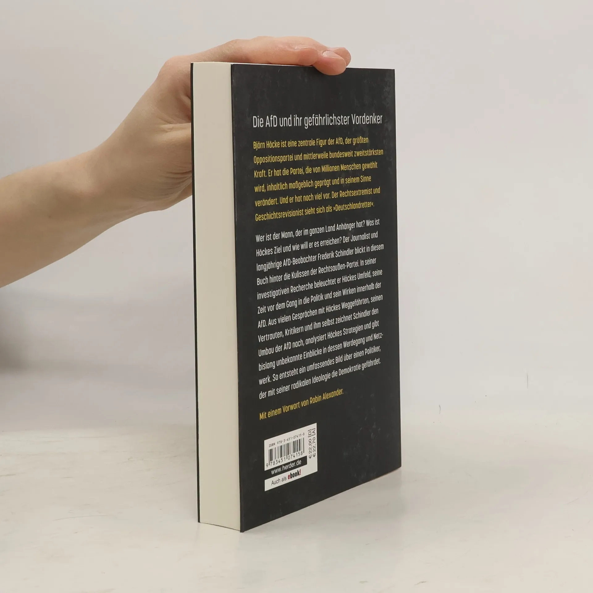 Björn Höcke stellt mit der AfD die größte Oppositionspartei und mittlerweile bundesweit zweitstärkste Kraft. Er hat die Partei, die von Millionen Menschen gewählt wird, inhaltlich maßgeblich geprägt und in seinem Sinne verändert. Und er hat noch viel vor. Der Rechtsextremist und Geschichtsrevisionist sieht sich als »Deutschlandretter«. Wer ist der Mann, der im ganzen Land Anhänger hat? Wie hat es Höcke geschafft, aus einer rechtskonservativen Anti-Euro-Partei eine vom Bundesamt für Verfassungsschutz als in Teilen gesichert rechtsextremistisch eingestufte Bestrebung zu formen, in der ihm niemand mehr widerspricht? Was ist Höckes Ziel und wie will er es erreichen? Der Journalist und langjährige AfD-Beobachter Frederik Schindler blickt in diesem Buch hinter die Kulissen der Rechtsaußen-Partei. In seiner investigativen Recherche beleuchtet er Höckes Umfeld, seine Zeit vor dem Gang in die Politik und sein Wirken innerhalb der AfD. Aus vielen Gesprächen mit Höckes Weggefährten, seinen Vertrauten, Kritikern und ihm selbst zeichnet Schindler den Umbau der AfD nach, analysiert Höckes Strategien und gibt Einblicke in dessen Netzwerk. So entsteht ein umfassendes Bild über einen Politiker, der mit seiner radikalen Ideologie die Demokratie gefährdet.