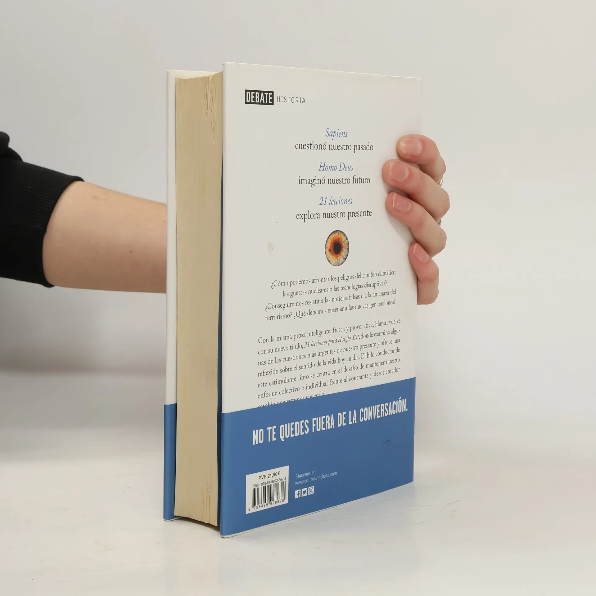 "¿Cómo podemos protegernos de las guerras nucleares, los cataclismos ecológicos o las tecnologías disruptivas? ¿Qué podemos hacer contra la propagación de la posverdad o la amenaza del terrorismo? ¿Qué debemos enseñar a nuestros hijos? Con la misma prosa inteligente, fresca y provocadora, Harari vuelve a librerías con un nuevo título, 21 lecciones para el siglo XXI, en el que examina algunas de las cuestiones más urgentes de nuestro presente. El hilo dorado que recorre este estimulante nuevo libro es el desafío de mantener nuestro enfoque colectivo e individual frente al constante y desorientador cambio que estamos viviendo. ¿Somos aún capaces de entender el mundo que hemos creado?"--Cubierta trasera