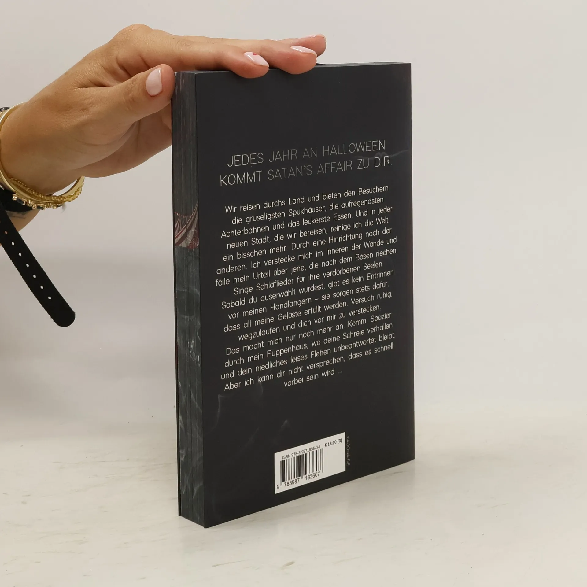 Mit farbigem Buchschnitt - limitiert - Jedes Jahr an Halloween kommt Satan’s Affair zu dir. Wir reisen durchs Land und bieten den Besuchern die gruseligsten Spukhäuser, die aufregendsten Achterbahnen und das leckerste Essen. Und in jeder neuen Stadt, die wir bereisen, reinige ich die Welt ein bisschen mehr. Durch eine Hinrichtung nach der anderen. Ich verstecke mich im Inneren der Wände und fälle mein Urteil über jene, die nach dem Bösen riechen. Singe Schlaflieder für ihre verdorbenen Seelen. Sobald du auserwählt wurdest, gibt es kein Entrinnen vor meinen Handlangern – sie sorgen stets dafür, dass all meine Gelüste erfüllt werden. Versuch ruhig, wegzulaufen und dich vor mir zu verstecken. Das macht mich nur noch mehr an. Komm. Spazier durch mein Puppenhaus, wo deine Schreie verhallen und dein niedliches leises Flehen unbeantwortet bleibt. Aber ich kann dir nicht versprechen, dass es schnell vorbei sein wird ... Leseempfehlung: ab 18 Jahre