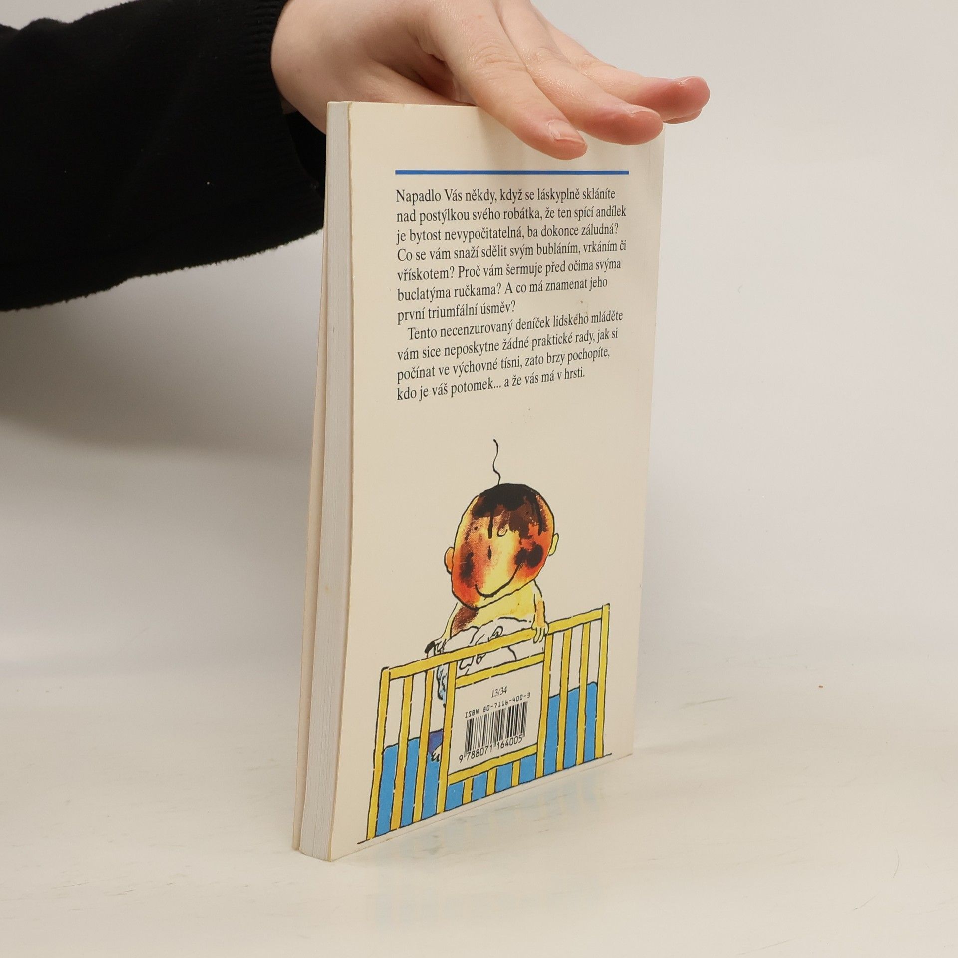 Napadlo Vás někdy, když se láskyplně skláníte nad postýlkou svého robátka, že ten spící andílek je bytost nevypočitatelná, ba dokonce záludná? Co se vám snaží sdělit svým bubláním, vrkáním či vřískotem? Proč vám šermuje před očima svýma buclatýma ručkama? A co má znamenat jeho první triumfální úsměv? Tento necenzurovaný deníček lidského mláděte vám sice neposkytne žádné praktické rady, jak si počínat ve výchovné tísni, zato brzy pochopíte, kdo je váš potomek... a že vás má v hrsti.