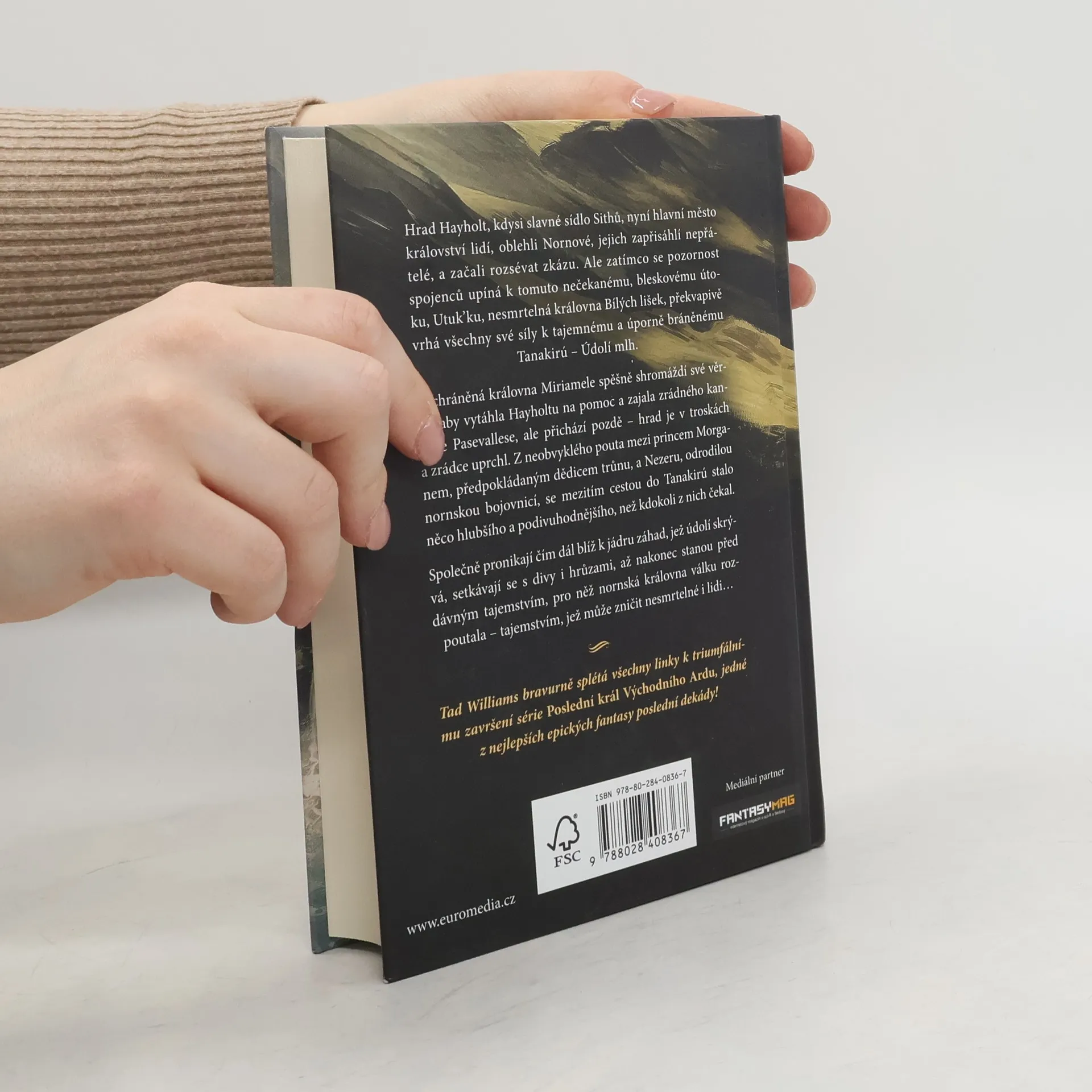 Hrad Hayholt, kdysi slavné sídlo Sithů, nyní hlavní město království lidí, oblehli Nornové, jejich zapřisáhlí nepřátelé, a začali rozsévat zkázu. A zatímco pozornost spojenců se upíná k tomuto nečekanému, bleskovému útoku, Utuk’ku, nesmrtelná královna Bílých lišek mění strategii a vrhá všechny své síly k tajemnému a úporně bráněnému Tanakirú – Údolí mlh. Zachráněná královna Miriamele spěšně shromáždí své věrné, aby vytáhla Hayholtu na pomoc a zajala zrádného kancléře Pasevallese, ale přichází pozdě – hrad je v troskách a zrádce uprchl. Z neobvyklého pouta mezi princem Morganem, předpokládaným dědicem trůnu, a Nezeru, odrodilou nornskou bojovnicí, se cestou do Tanakirú stalo něco hlubšího a podivuhodnějšího, než kdokoli z nich čekal. Pronikají čím dál blíž k jádru záhad, jež údolí skrývá, setkávají se s divy i hrůzami, až nakonec stanou před dávným tajemstvím, pro něž nornská královna válku rozpoutala – tajemstvím, jež může zničit nesmrtelné i lidi. Ani to však zdaleka nejsou všichni hráči toho velkolepého finále, kterým Tad Williams s přehledem znamenitého vypravěče završuje sérii Poslední král Východního Ardu.