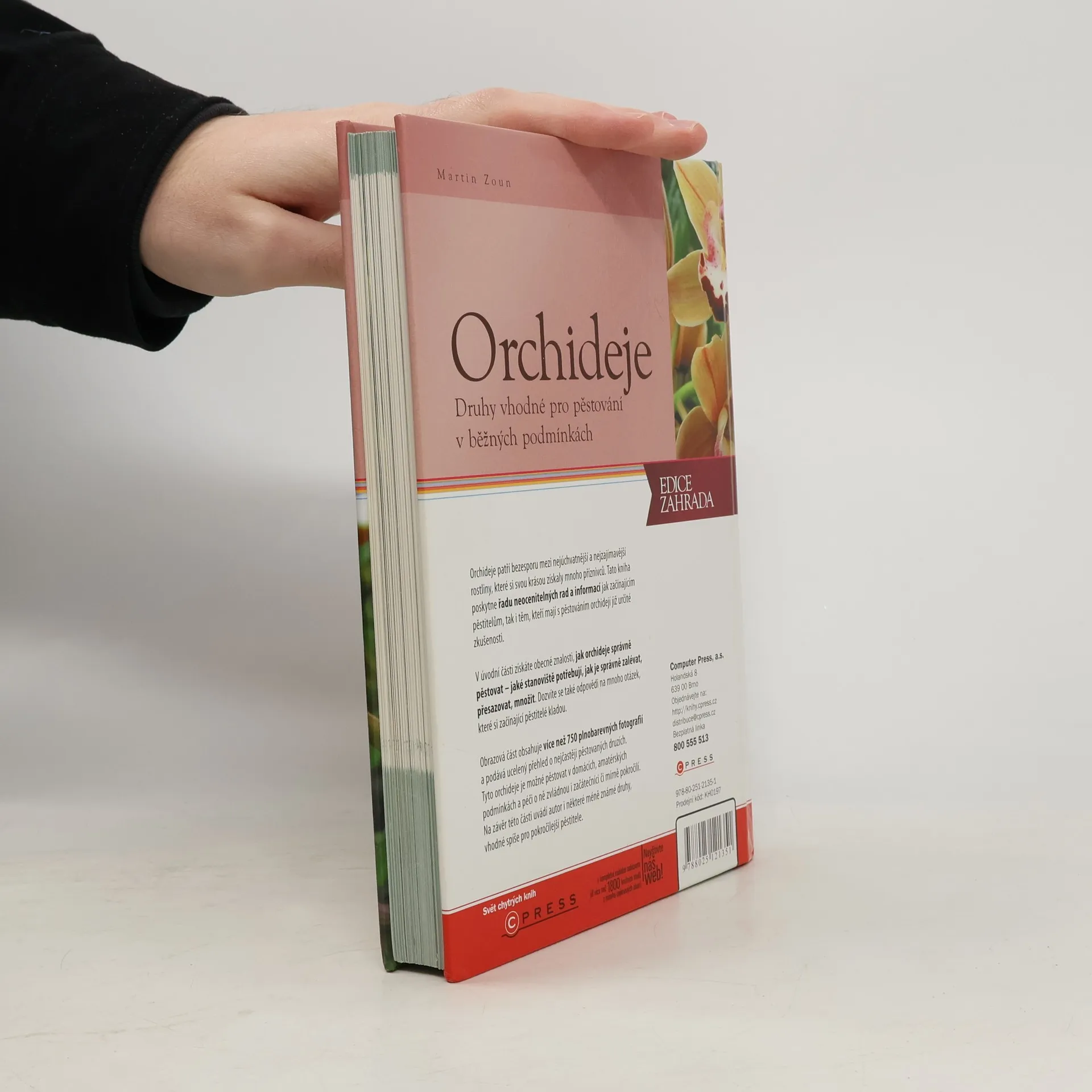Obliba domácího pěstování orchidejí stále stoupá a tyto zajímavé rostliny nyní zdobí nejeden český byt. Naše praktická příručka vás seznámí se všemi úskalími, která vás mohou při jejich pěstování potkat. Dbali jsme zároveň na to, aby tato kniha byla vpravdě česká - zohledňuje tedy především ty druhy orchidejí, které lze běžně zakoupit v našich obchodech a zahradnických centrech. (druhy vhodné pro pěstování v domácích podmínkách)