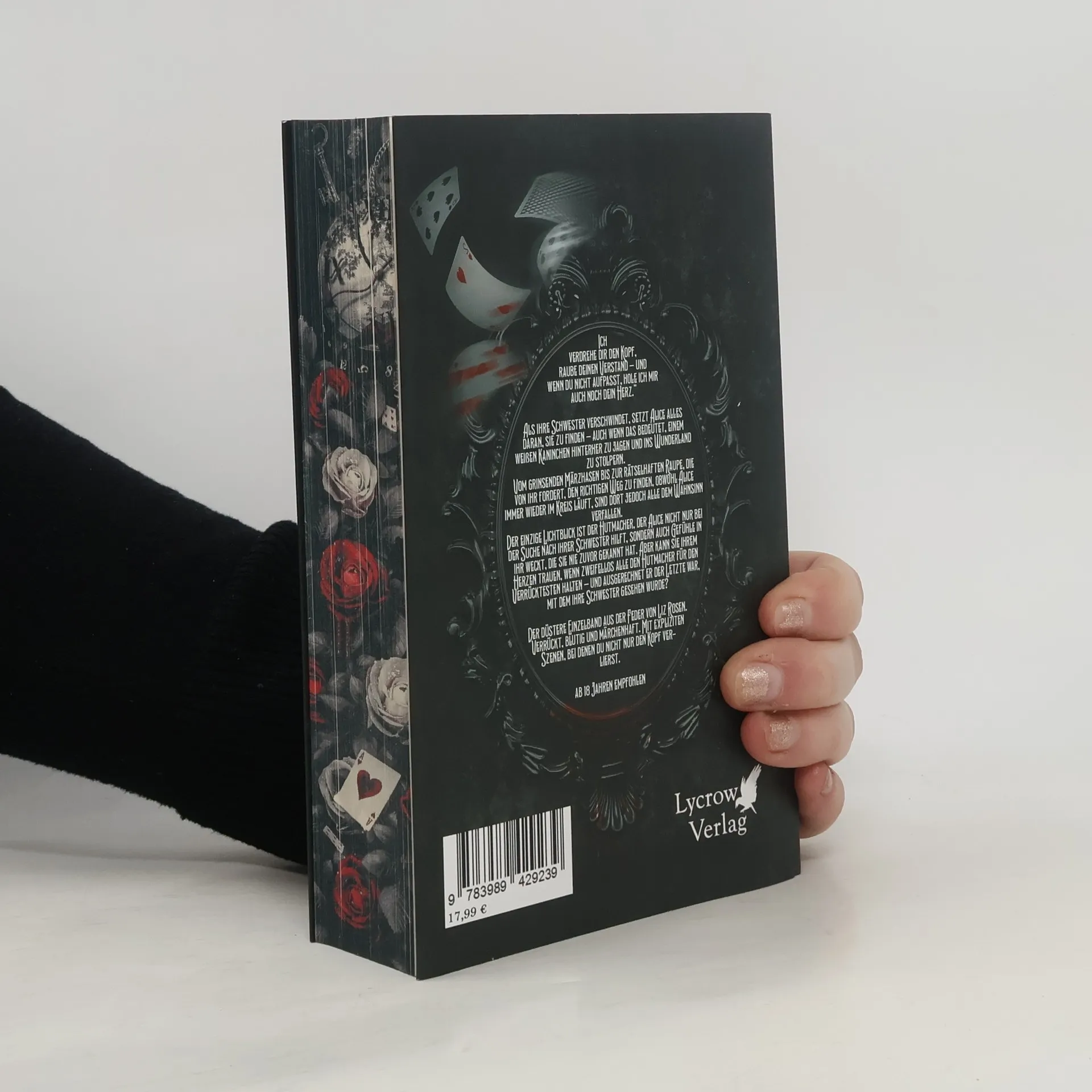+++ Aufwendig gestaltete Ausgabe mit limitiertem Farbschnitt +++ „Ich verdrehe dir den Kopf, raube deinen Verstand – und wenn du nicht aufpasst, hole ich mir auch noch dein Herz.“ Als ihre Schwester verschwindet, setzt Alice alles daran, sie zu finden – auch wenn das bedeutet, einem weißen Kaninchen hinterher zu jagen und ins Wunderland zu stolpern. Vom grinsenden Märzhasen bis zur rätselhaften Raupe, die von ihr fordert, den richtigen Weg zu finden, obwohl Alice immer wieder im Kreis läuft, sind dort jedoch alle dem Wahnsinn verfallen. Der einzige Lichtblick ist der Hutmacher, der Alice nicht nur bei der Suche nach ihrer Schwester hilft, sondern auch Gefühle in ihr weckt, die sie nie zuvor gekannt hat. Aber kann sie ihrem Herzen trauen, wenn zweifellos alle den Hutmacher für den Verrücktesten halten – und ausgerechnet er der Letzte war, mit dem ihre Schwester gesehen wurde? Der düstere Einzelband aus der Feder von Liz Rosen. Verrückt, blutig und märchenhaft. Mit expliziten Szenen, bei denen du nicht nur den Kopf verlierst.