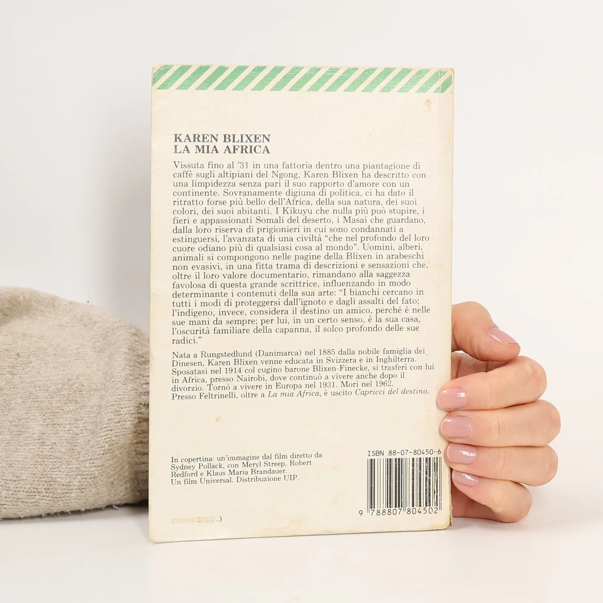 Vissuta fino al ’31 in una fattoria dentro una piantagione di caffè sugli altipiani del Ngong, Karen Blixen ha descritto con una limpidezza senza pari il suo rapporto d'amore con un continente. Sovranamente digiuna di politica, ci ha dato il ritratto forse più bello dell'Africa, della sua natura, dei suoi colori, dei suoi abitanti. I Kikuyu che nulla più può stupire, i fieri e appassionati Somali del deserto, i Masai che guardano, dalla loro riserva di prigionieri in cui sono condannati a estinguersi, l'avanzata di una civiltà “che nel profondo del loro cuore odiano più di qualsiasi cosa al mondo”. Uomini, alberi, animali si compongono nelle pagine della Blixen in arabeschi non evasivi, in una fitta trama di descrizioni e sensazioni che, oltre il loro valore documentario, rimandano alla saggezza favolosa di questa grande scrittrice, influenzando in modo determinante i contenuti della sua arte: “I bianchi cercano in tutti i modi di proteggersi dall'ignoto e dagli assalti del fato; l’indigeno, invece, considera il destino un amico, perché è nelle sue mani da sempre; per lui, in un certo senso, è la sua casa, l’oscurità familiare della capanna, il solco profondo delle sue radici.”